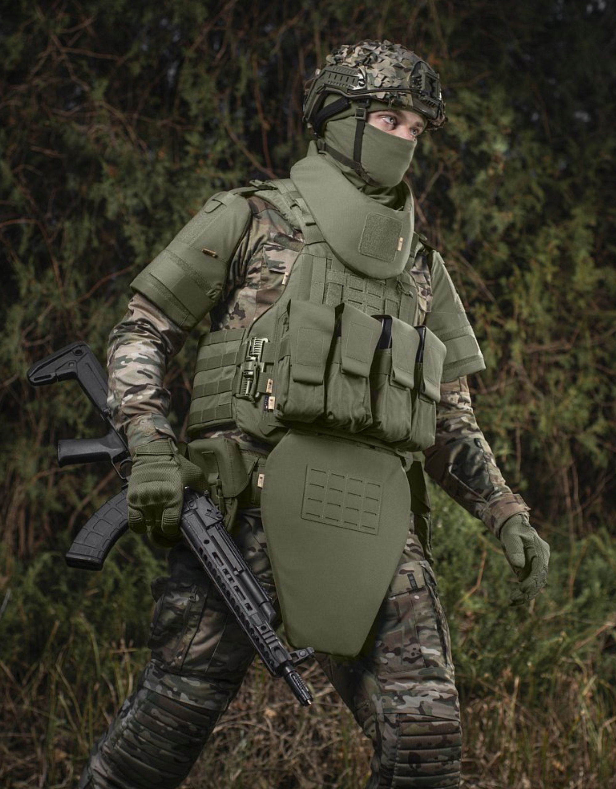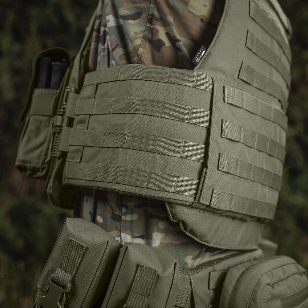 Тактический жилет поддерживает баллистические пластины по системе: SAPI/ESAPI (Enchanted Small Arms Protective Insert) со срезанными верхними углами (стрелки срезают). Это американская система, используемая во всем мире вооруженными силами и силовыми структурами (а также польской армией и полицией).