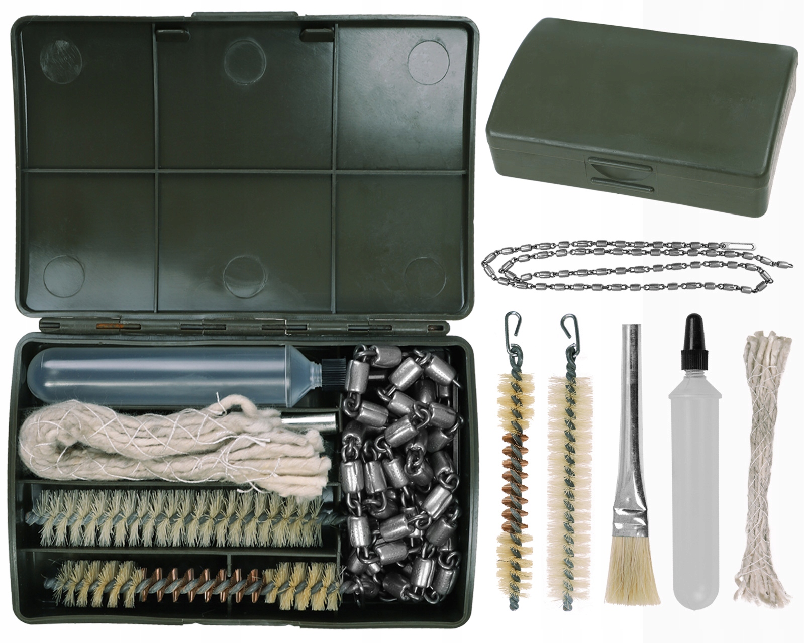 В комплект входят самые необходимые аксессуары для профессиональной и тщательной очистки внутренних поверхностей ствола.