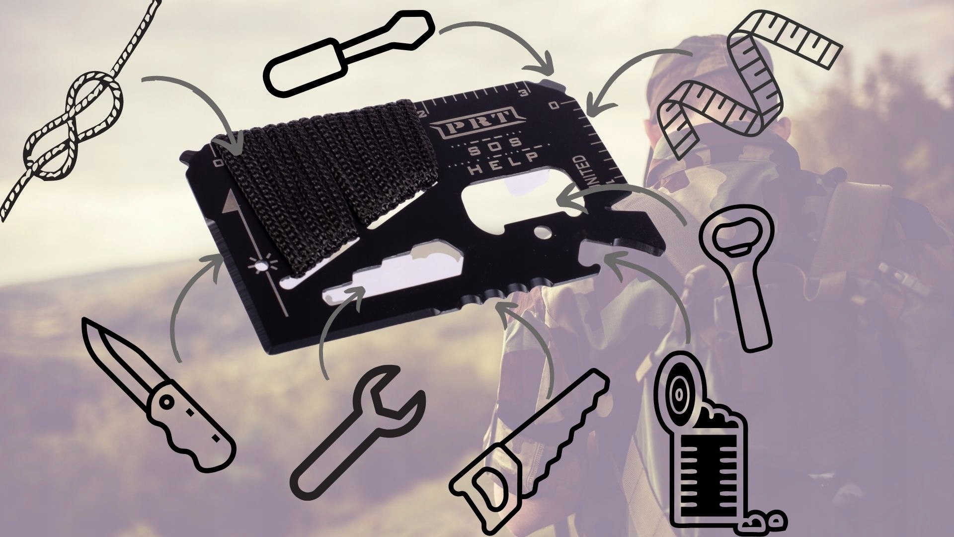 ➡️Карта выживания с веревкой и чехлом 12 в 1