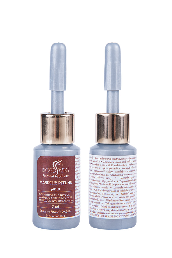 40% миндальная кислота в сочетании с лактобионовой кислотой и глюконолактоном с рН 1,5, мягко пилинга, стимулирует обновление эпидермиса, стимулирует синтез опорных волокон и гиалуроновой кислоты.