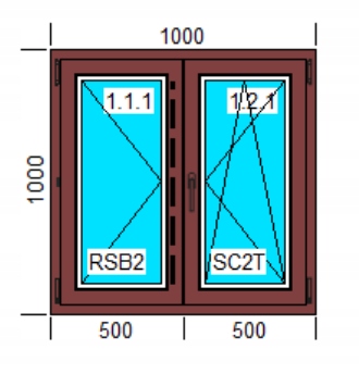 Размеры ОКНА ПВХ. 1000 x 1000 мм, поворот + наклон и поворот с ПОДВИЖНОЙ СТОЙКОЙ