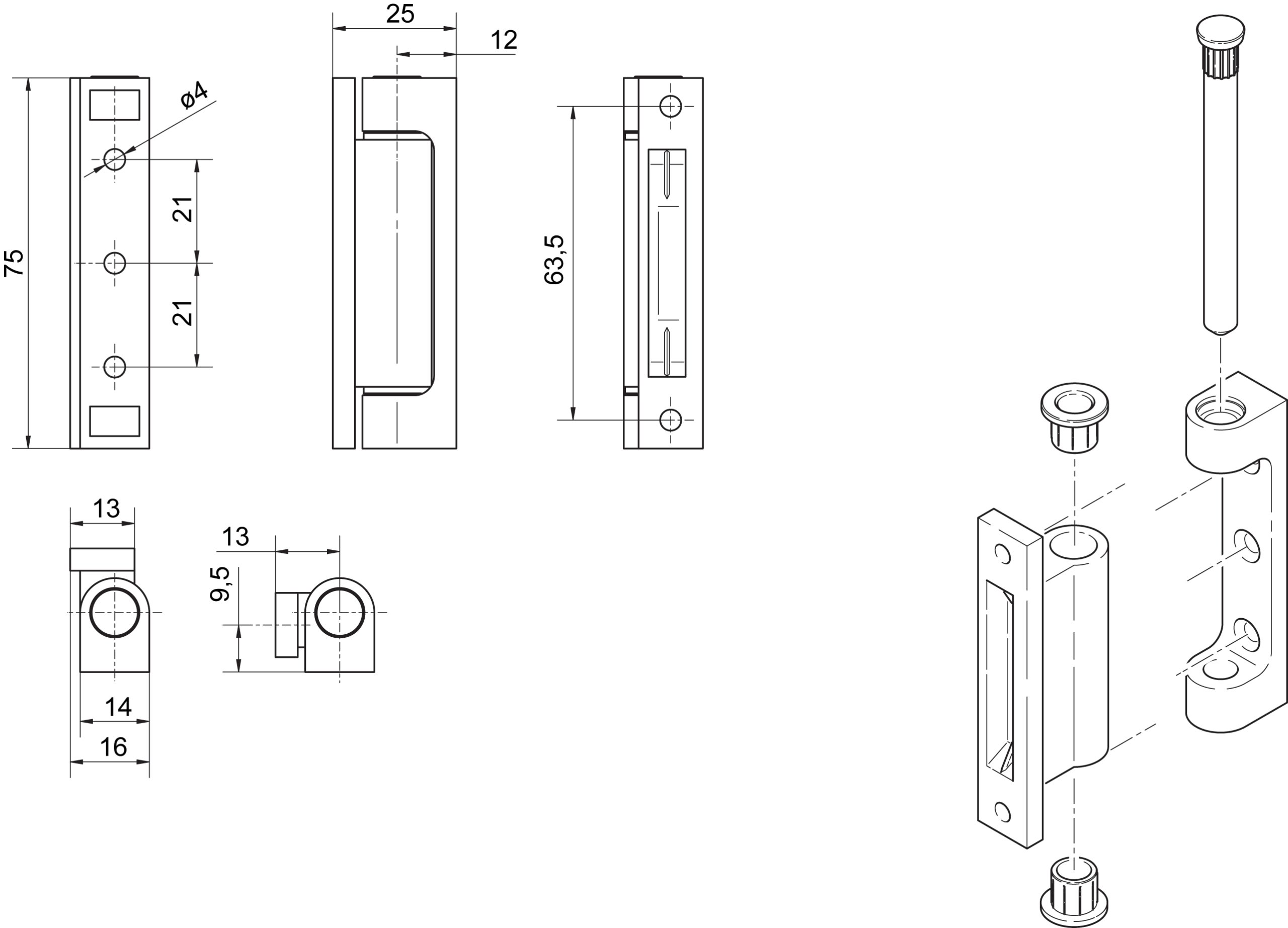 - элемент, прикрепленный к оконной раме, прикрепите для 3 винтов