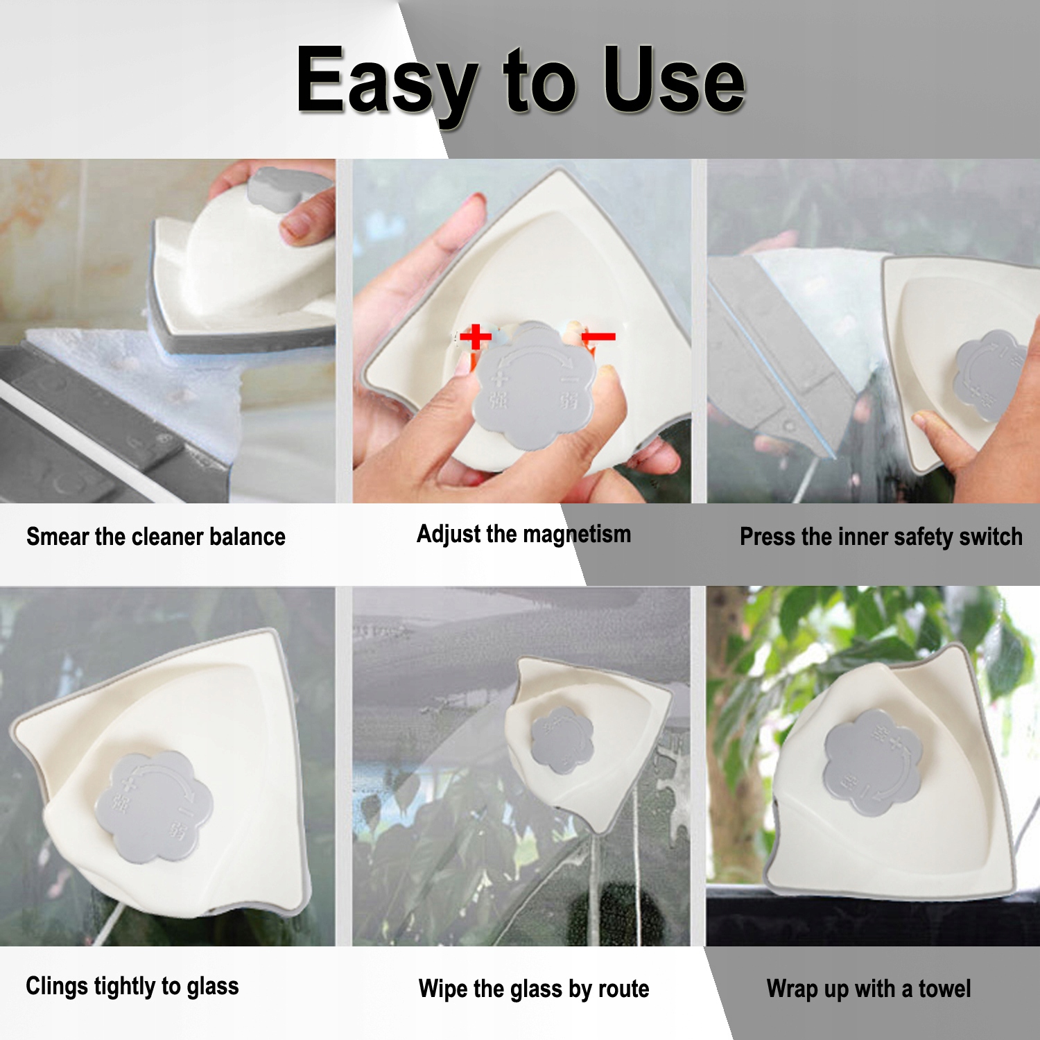 Сильный 10 -мм магнит с регулируемой магнитной функцией. Очень гибкая очистка индивидуального, двойного и нескольких стекла.