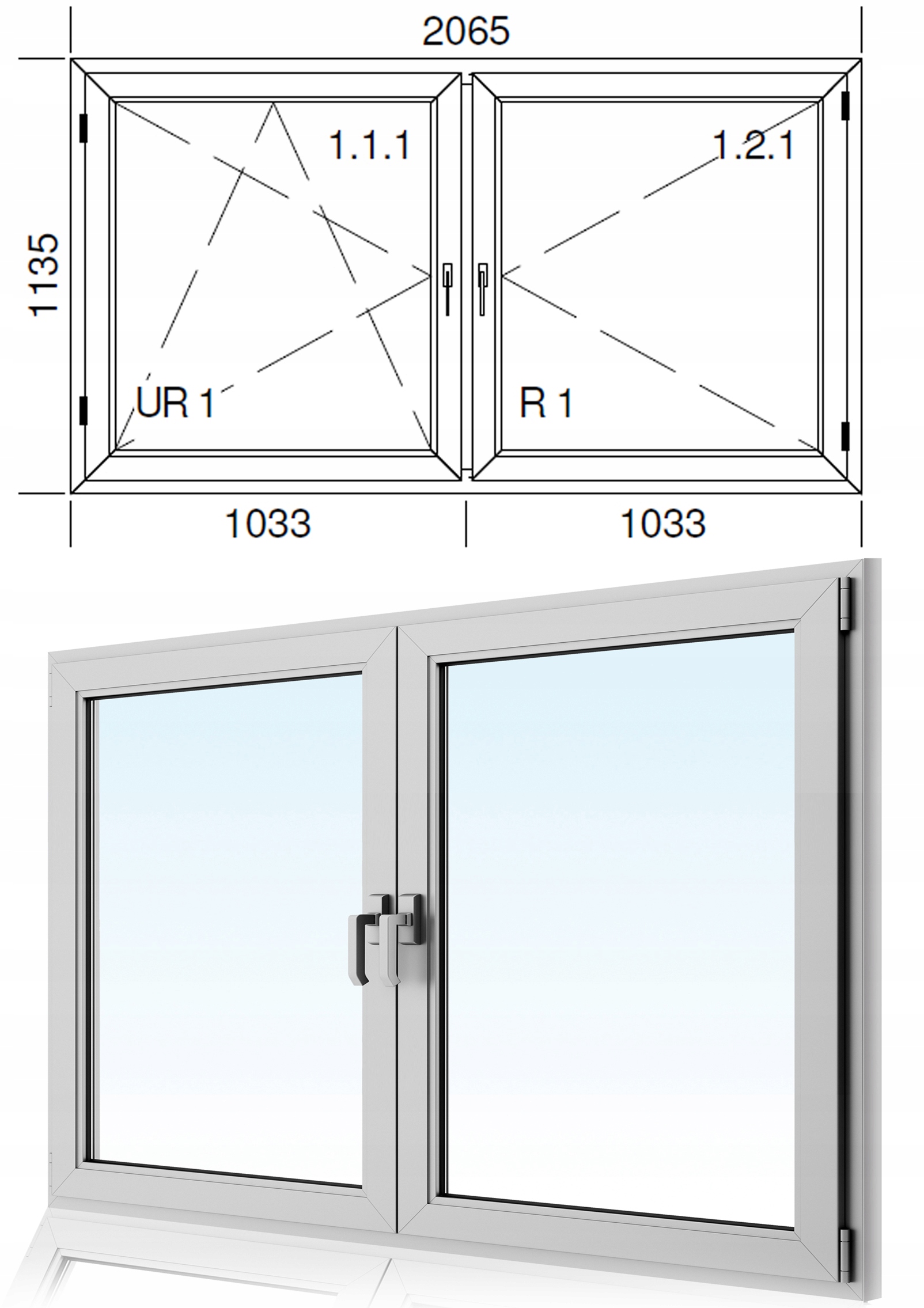 Окно ПВХ двухстворчатое Откидно-Поворотное + Поворотно-Поворотное 2065 x 1135 белого цвета от OMNIcorp