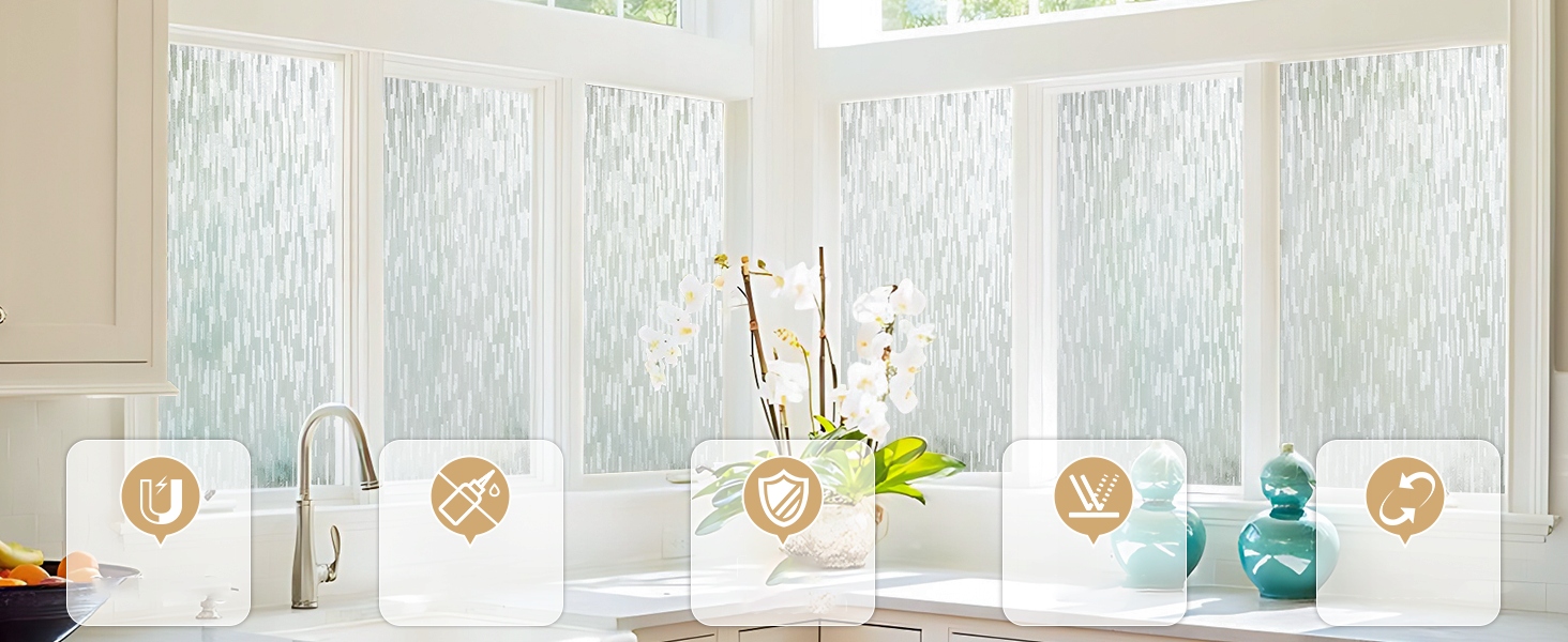 - Широко используется в различных помещениях: Этот продукт идеально подходит для добавления декоративных и функциональных покрытий на гладкие стеклянные поверхности без пятна пыли и масла. Широко используется в различных местах: кухня, гостиная, ресторан, офис, гостиница, класс, холл и т. д.