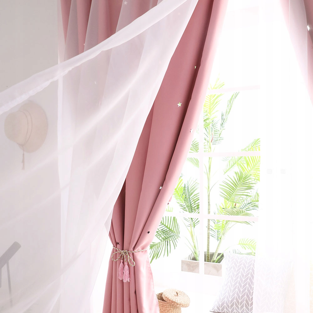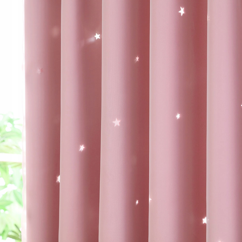 1. На занавеске есть небольшая полая звезда, позволяющая свету проходить через эти отверстия и освещать пол, создавая красивую и естественную сцену.