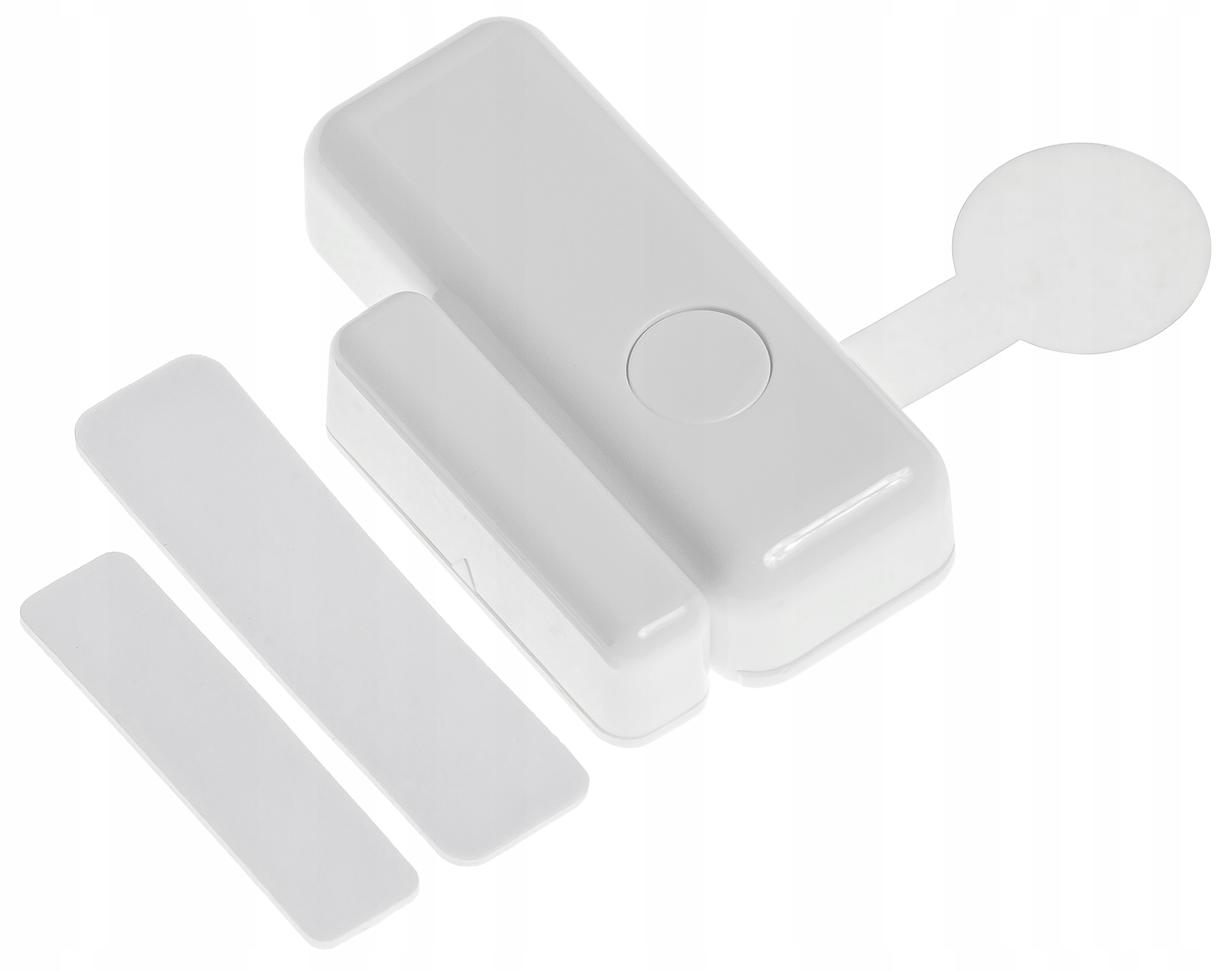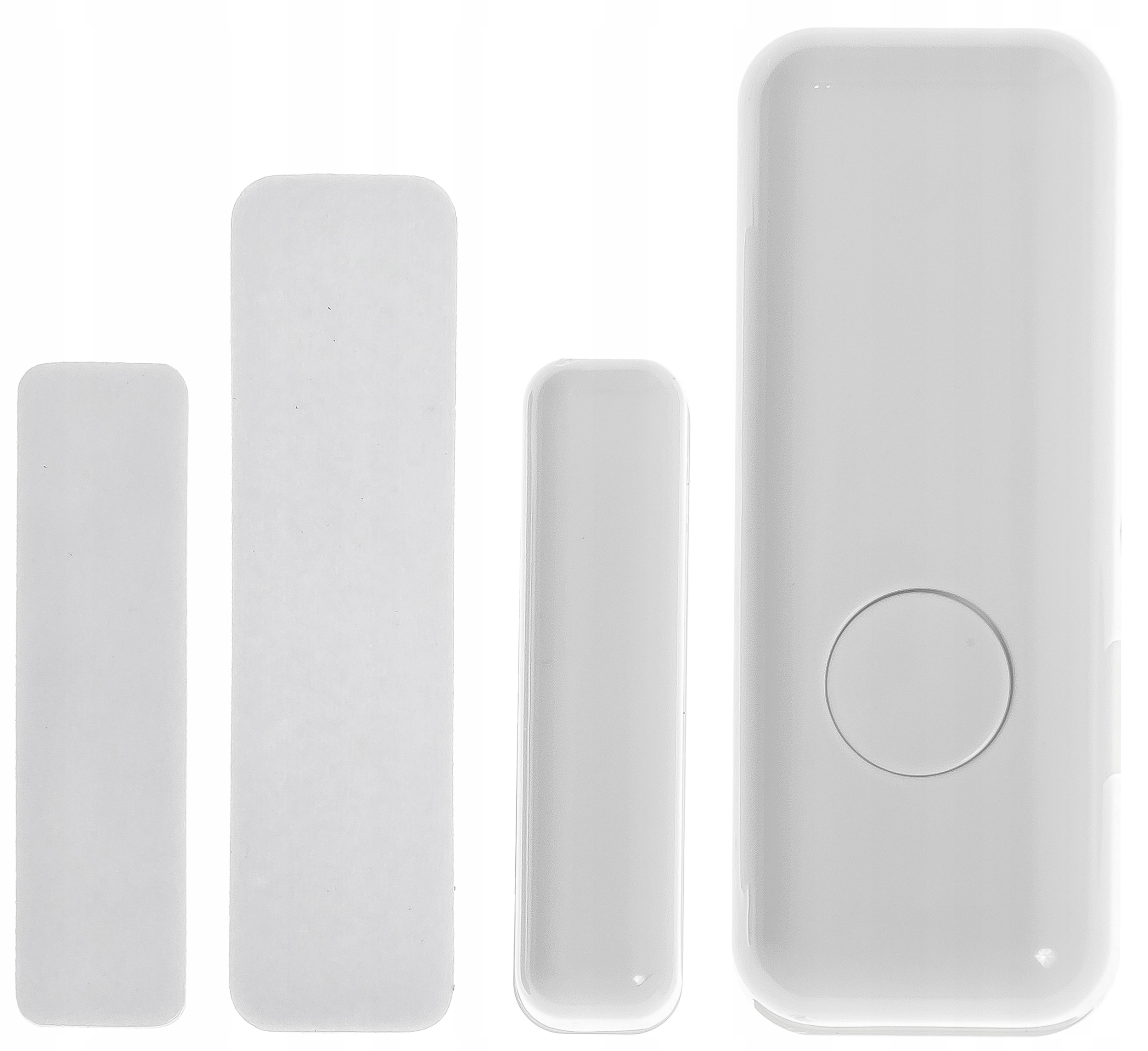 Датчик состоит из 2-х элементов, крепящихся вплотную друг к другу с помощью двустороннего скотча к окну или двери. Если расстояние между элементами превышает миллиметры, датчик отправляет сигнал на ПКП о событии.