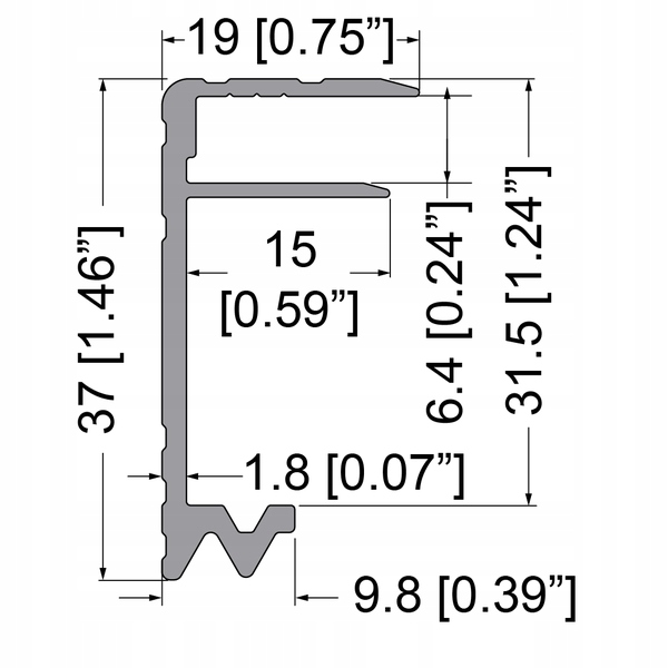 Профиль крышки 37 x 20 x 2,5 мм, предназначен для фанеры толщиной 6,5 мм.