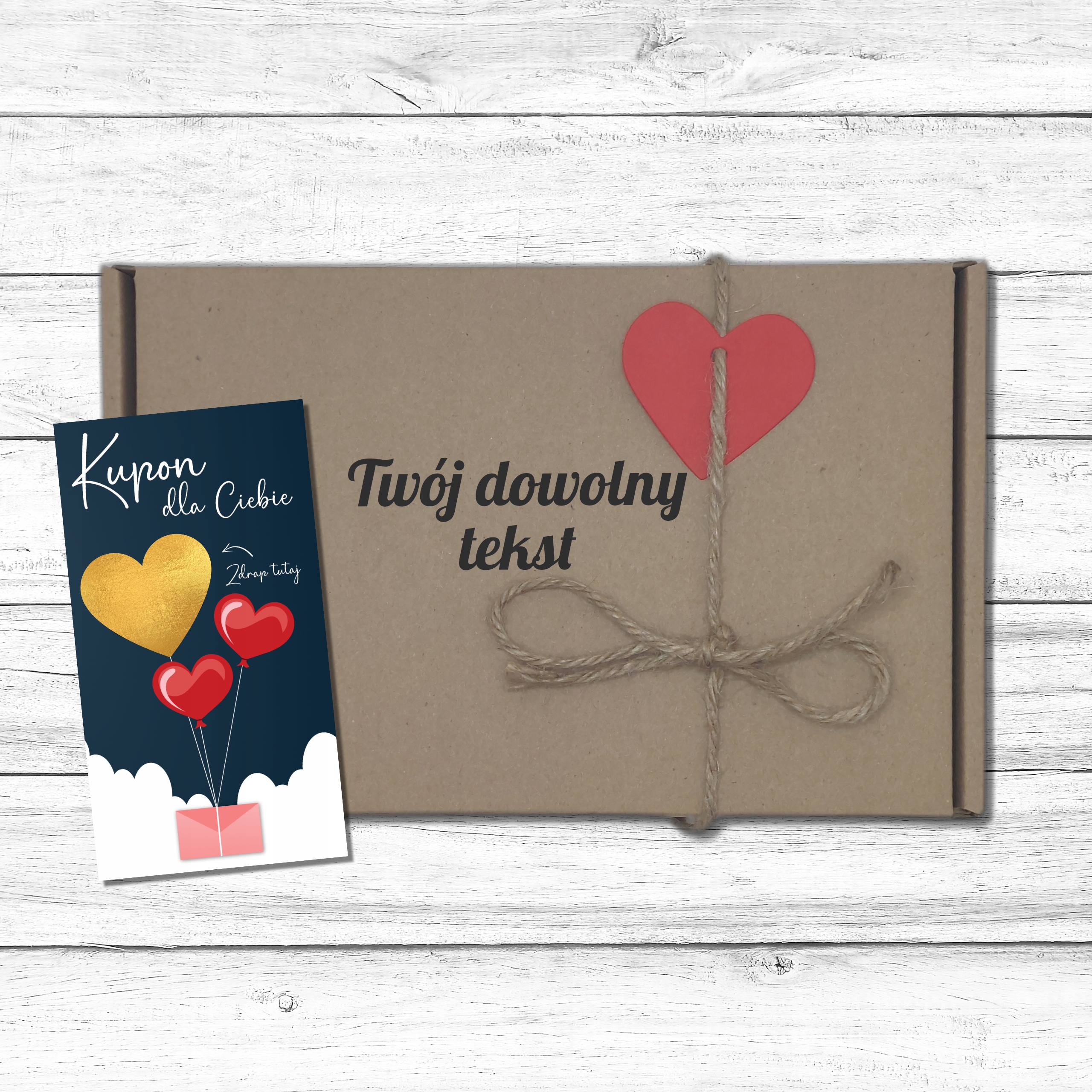 Конверт с купонами упакован в картонную коробку, на которой мы можем напечатать любой текст! (максимум 4 слова)