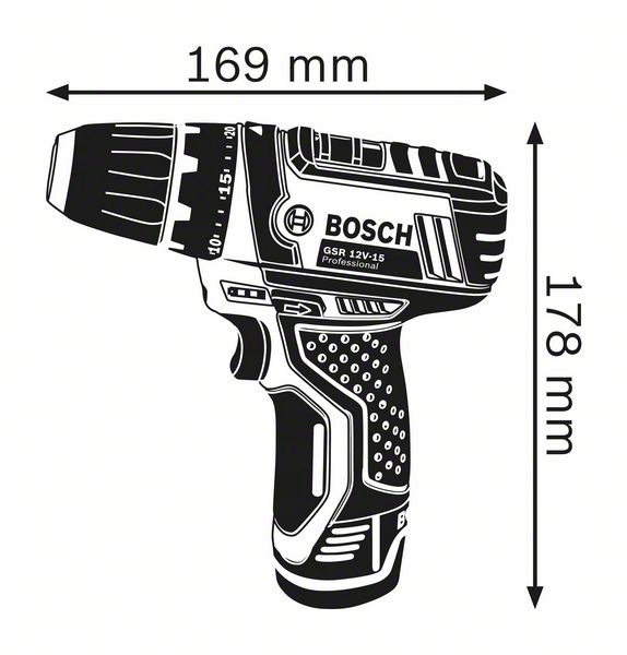 Дрель-шуруповерт Bosch GSR 12 В-15, 2x2,0 Ач, сумка