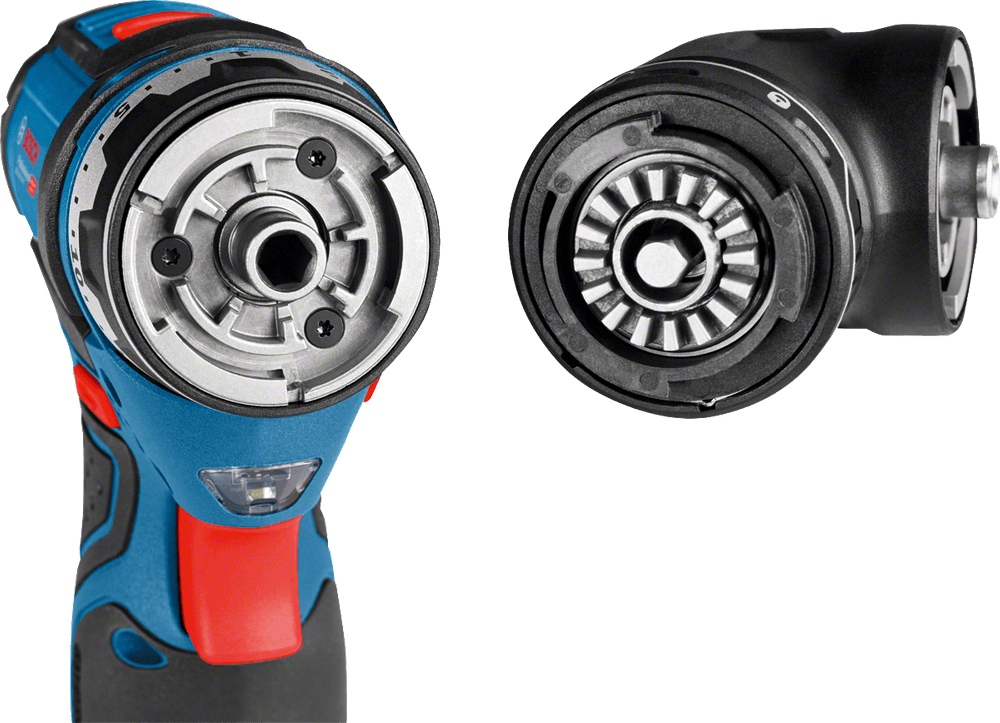 Исключительно короткий корпус (132 мм) позволяет сверлить и завинчивать в труднодоступных местах. Отвертка оснащена интерфейсом Bosch FlexiClick со встроенным магнитным держателем бит, который позволяет прикрепить сменный держатель отверток, сменный сверлильный патрон, сменный угловой держатель и сменный держатель отвертки близко к краю.