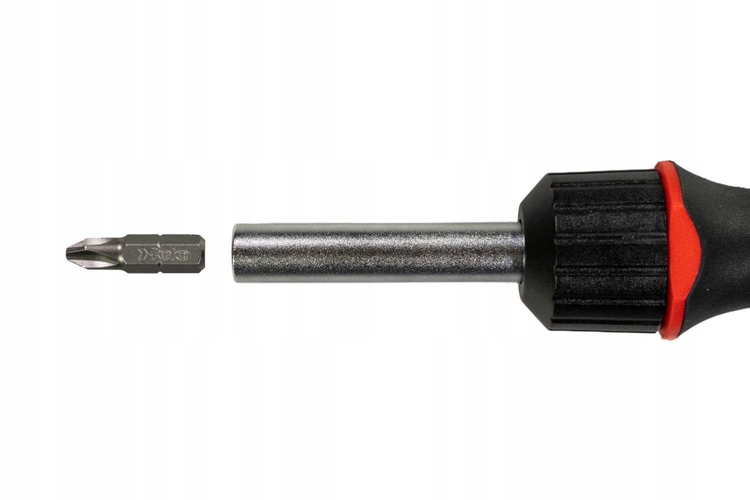 - Один инструмент, столько возможностей: отвертка на блистере с храповым механизмом, вмещающая 8 бит в магазине в ручке.