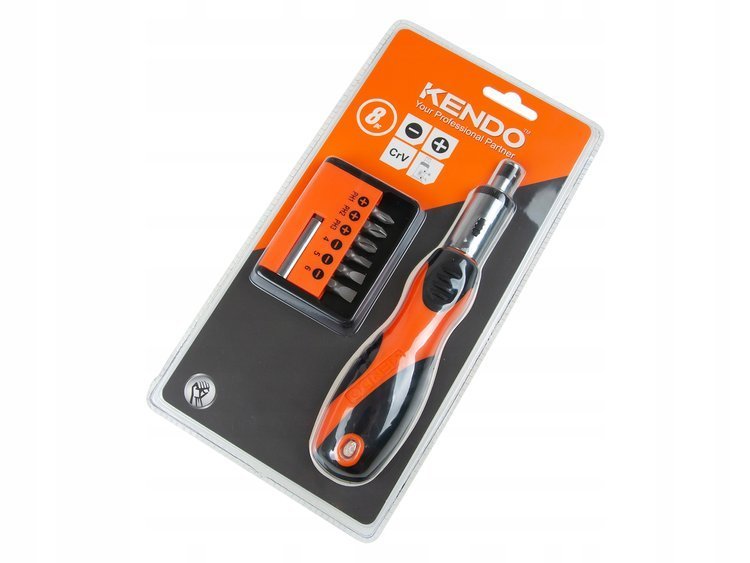 Тема предложения - это отвертка бренд kendo . Рабочая часть отвертки была изготовлена из хромированной стали-ванадии (CR-V), благодаря которой она более долговечна и менее восприимчива к коррозии. У отвертки есть магнитный держатель, который облегчает поддержание кончиков. Кроме того, эргономическая ручка облегчает работу и обеспечивает определенную сцепление