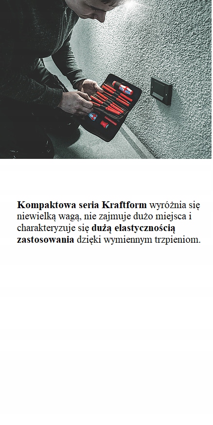 15 сменных штифтов из нержавеющей стали с изоляцией VDE, уменьшенного диаметра для утопленных резьбовых соединений и пружин. 2 ручки Kraftform 3817 VDE для эргономичной работы. Каждый инструмент проходит индивидуальное тестирование в соответствии со стандартом IEC 60900. Индивидуально контролируемая изоляция под напряжением 10 000 В гарантирует безопасную работу при напряжении 1 000 В. Инструменты Wera из нержавеющей стали закалены в вакуумных печах и обеспечивают твердость и прочность, необходимые для монтажных работ. Благодаря этому нет ограничений в их промышленном применении. Благодаря застежке-липучке чехол можно закрепить на стене, полке, мастерской и совместим с системой Wera 2go.