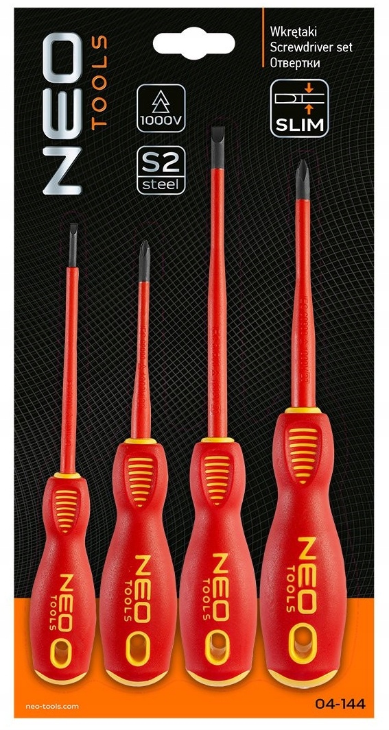 ОТВЕРТКИ 1000 В, НАБОР ИЗ 4 ШТ., ТОНКИЕ