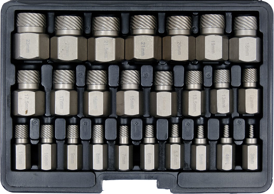 В комплект входят 25 экстракторов в рабочем диапазоне от 3 мм до 23 мм.