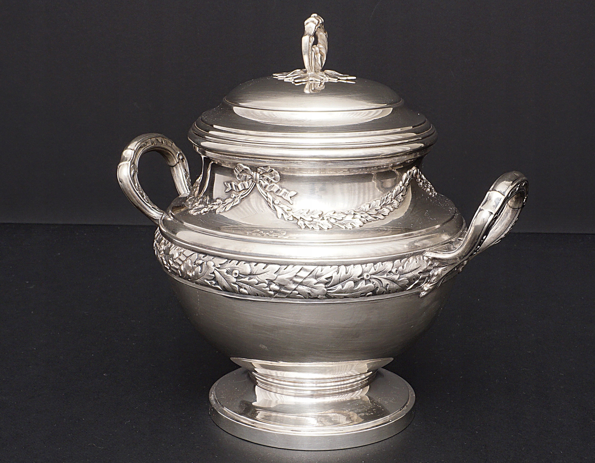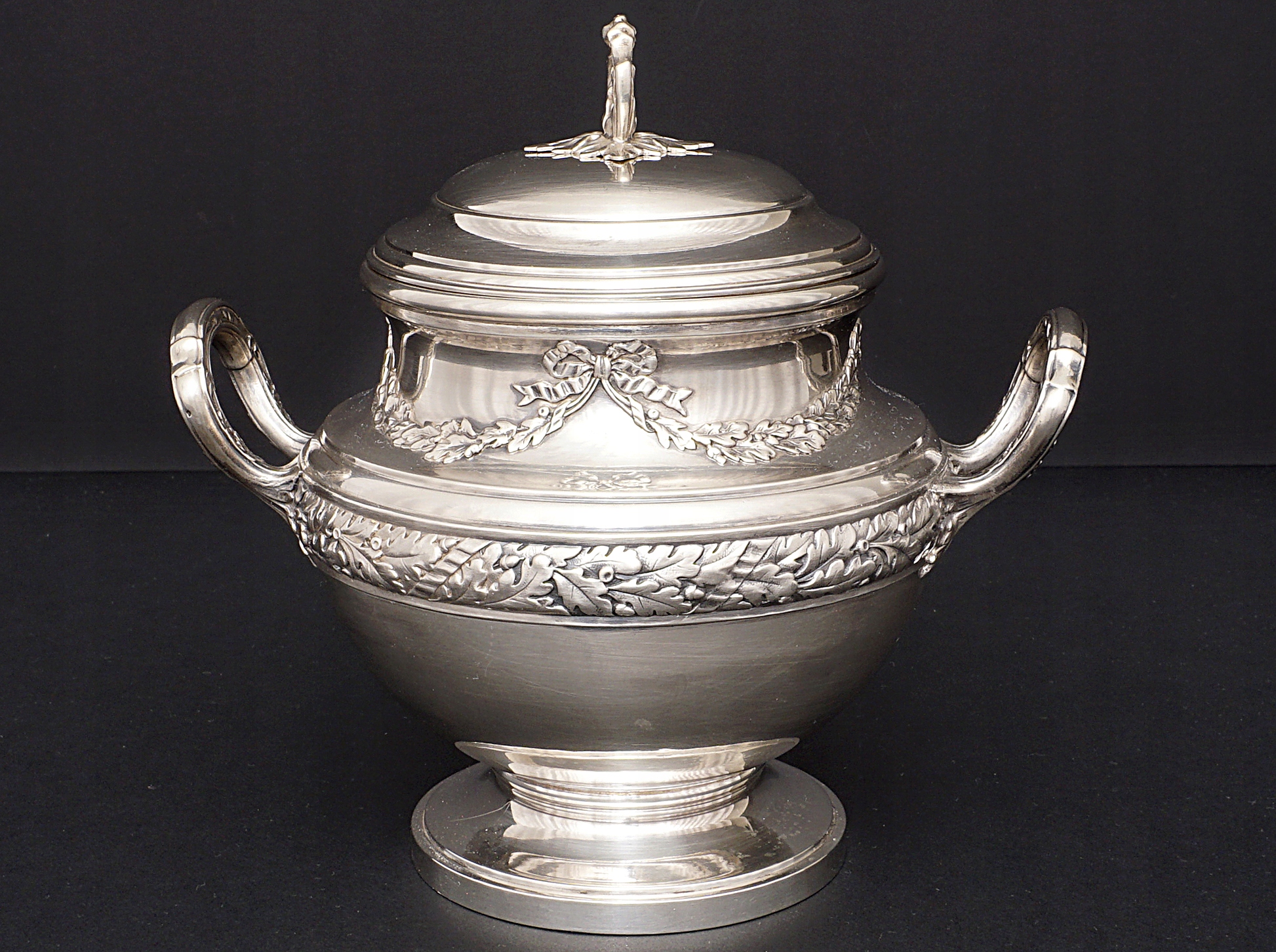 Сахарница изготовлена из серебра 950/1000 пробы.