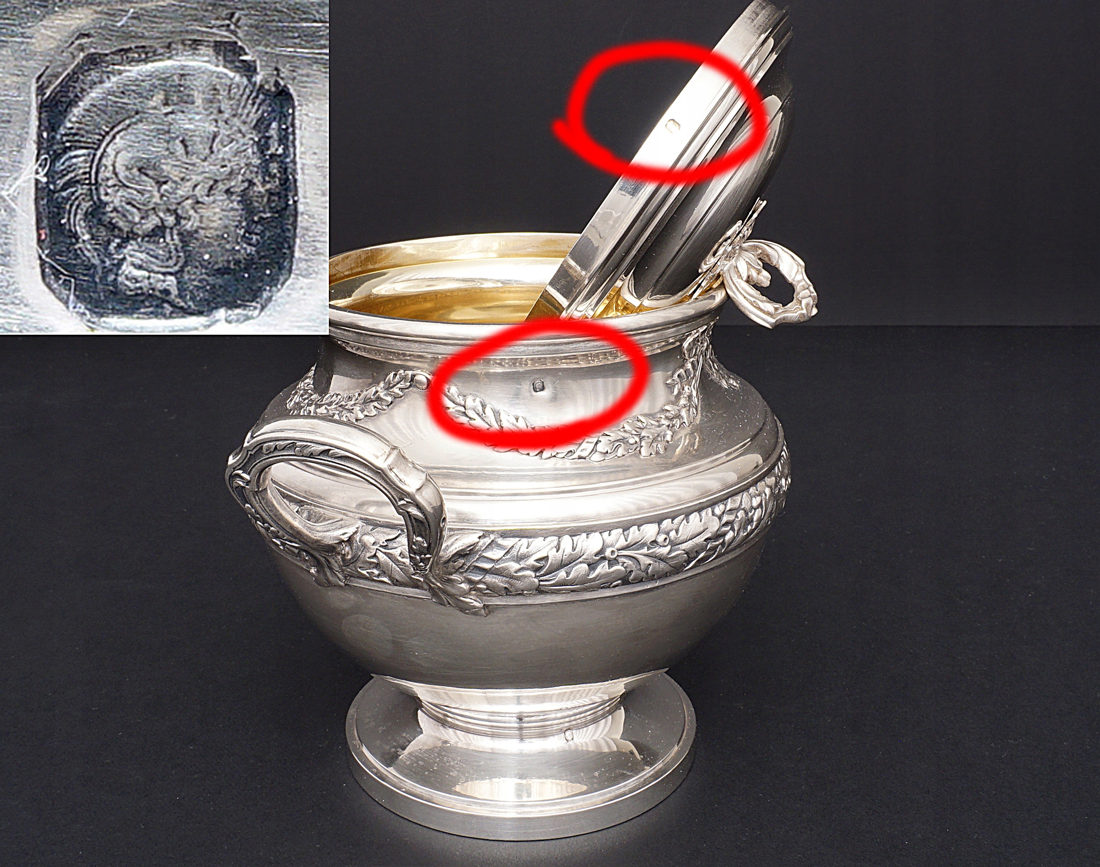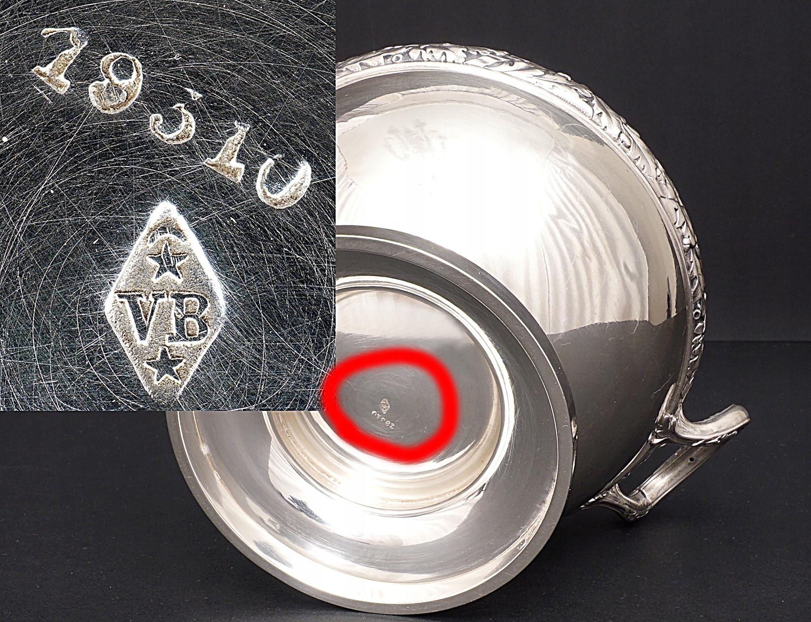 Пробирное клеймо Минерва с цифрой 1 и клеймо ювелира VB.