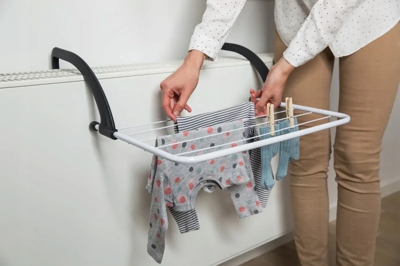 Просто поместив ее на радиатор в гостиной или другой комнате, вы также можете разложить ее на балконе или подоконнике. Несмотря на небольшой размер, она позволяет вешаеммного одежды.