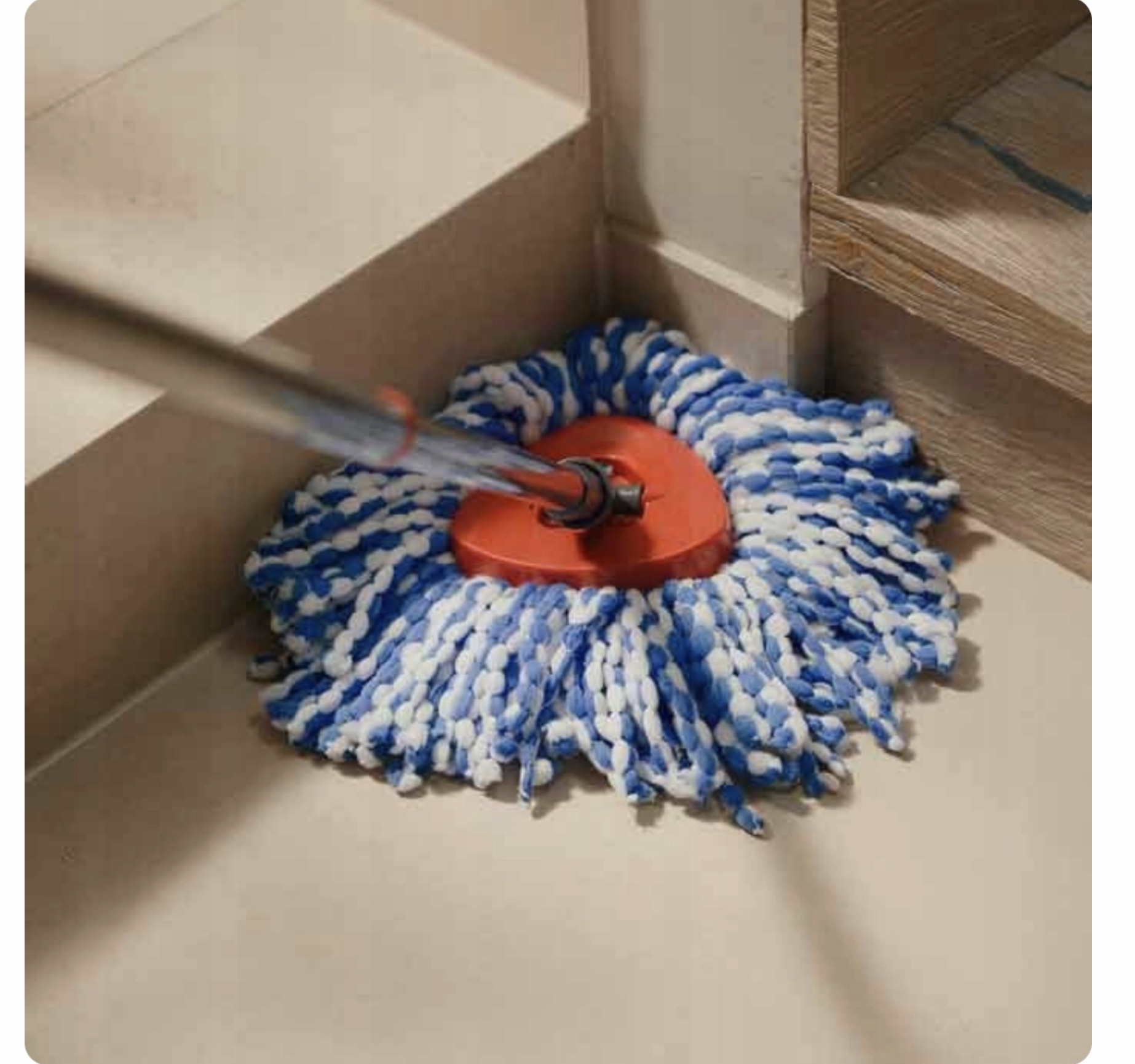 Швабра оснащена инновационным треугольным наконечником, который позволяет тщательно очищать даже труднодоступные места:
