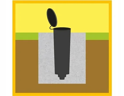 Набор садовой сушилки содержит специальное крепление крепления в бетоне или почве.