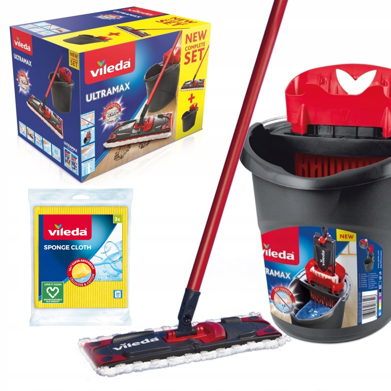 VILEDA ULTRAMAX 2в1 НАБІР ПЛОСКИХ ШВВБР + ВІДРО З СКВІРЕРОМ + Бонус ГАНТЯ