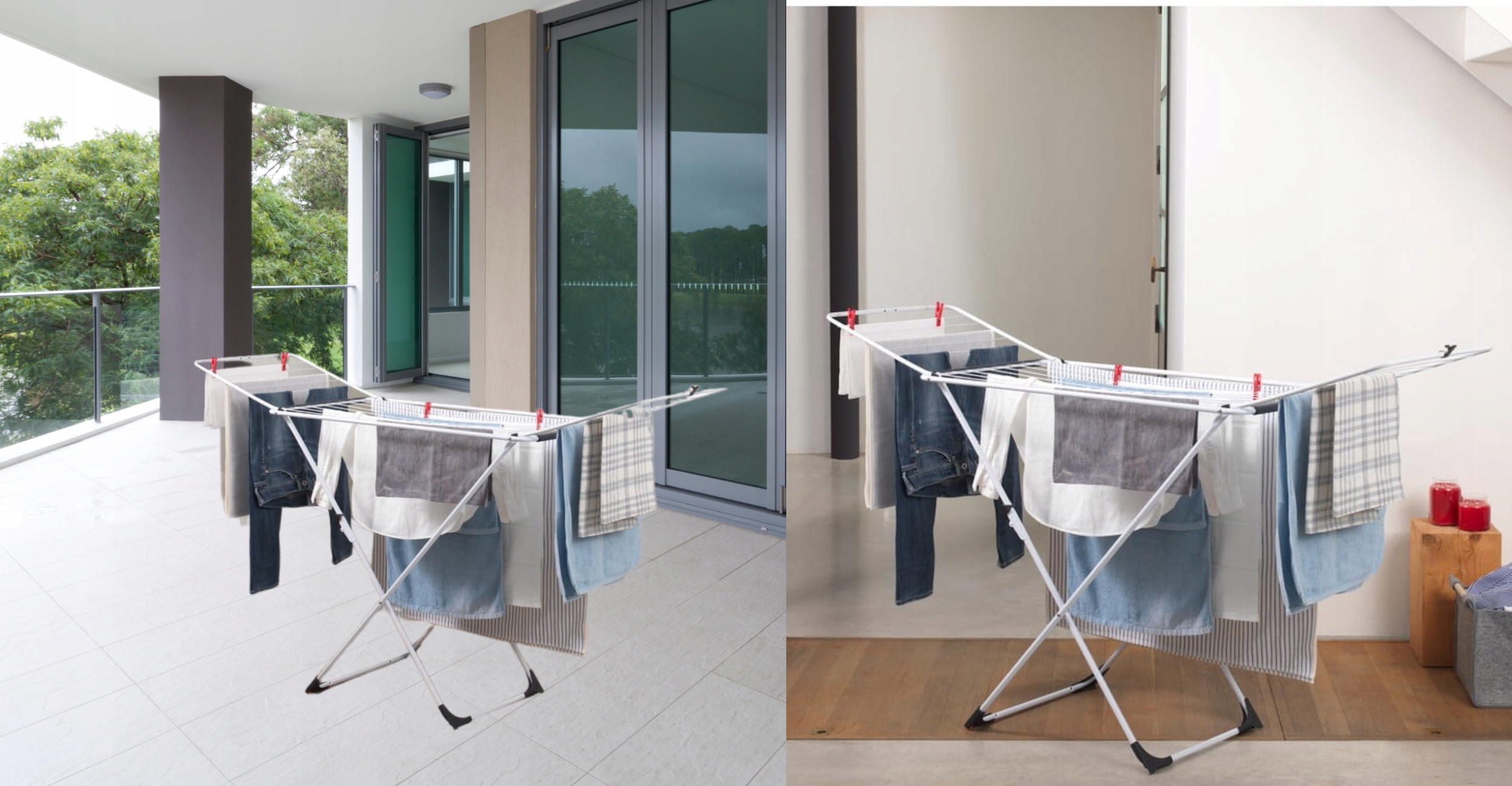Поскольку сушилка устойчива к погодным условиям, мы можем использовать ее как дома, так и на балконе или в саду