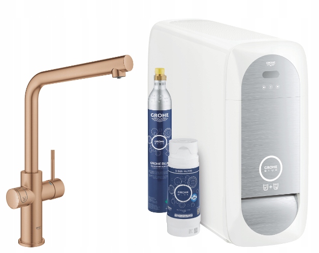 - регулируется для фильтра GROHE Blue размера S, размера M, фильтра с активированным углем GROHE Blue, фильтра GROHE Blue Ultrasafe и фильтра GROHE Blue магний+