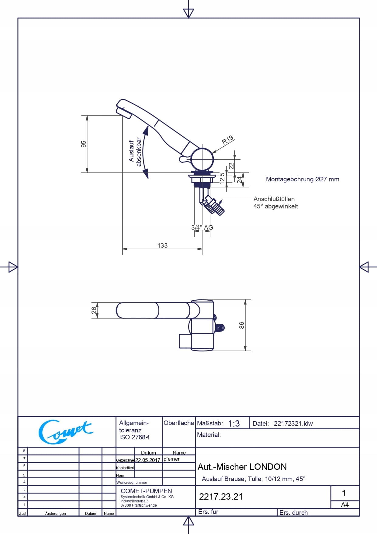 Крепёжное отверстие: 27 мм