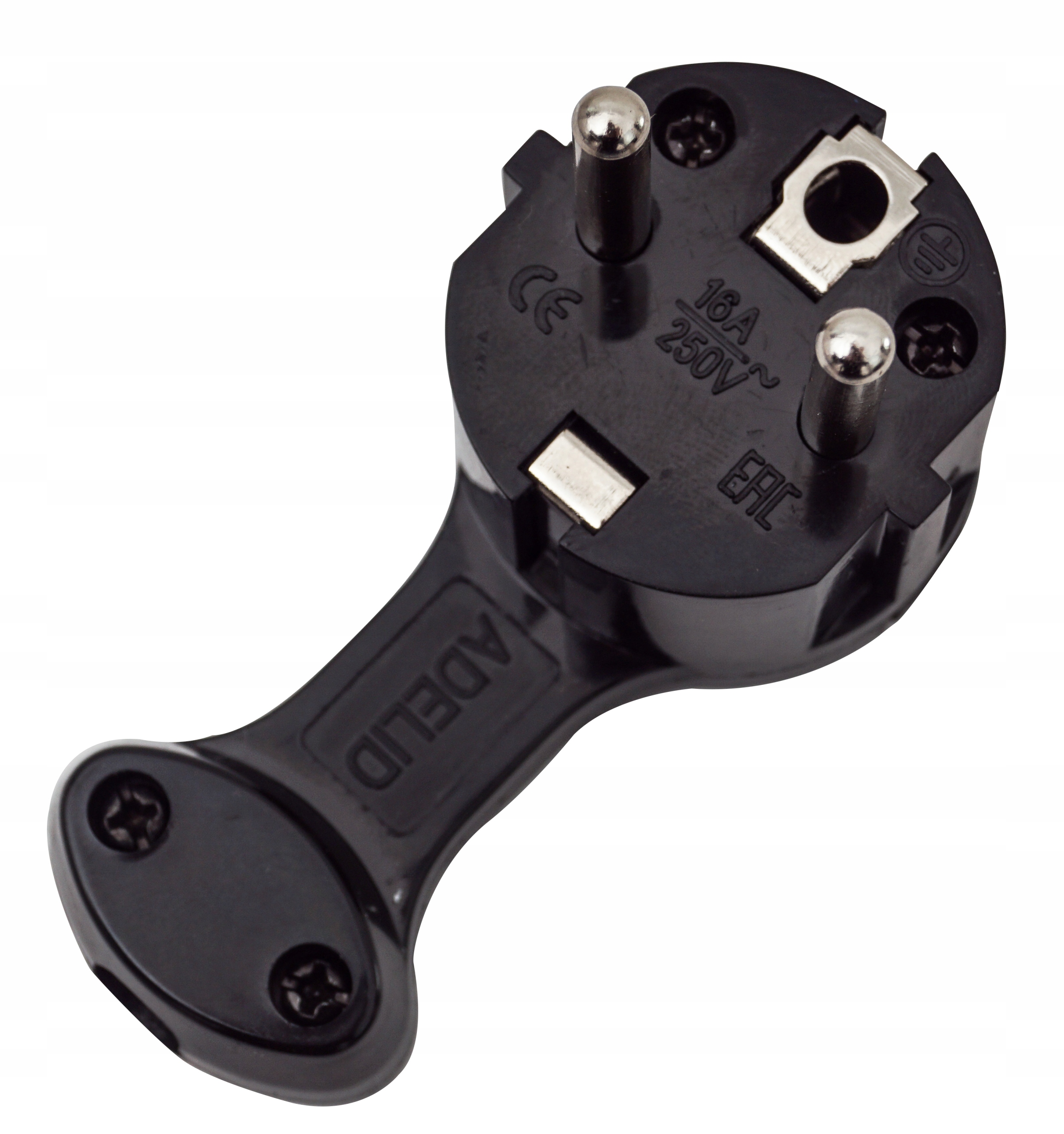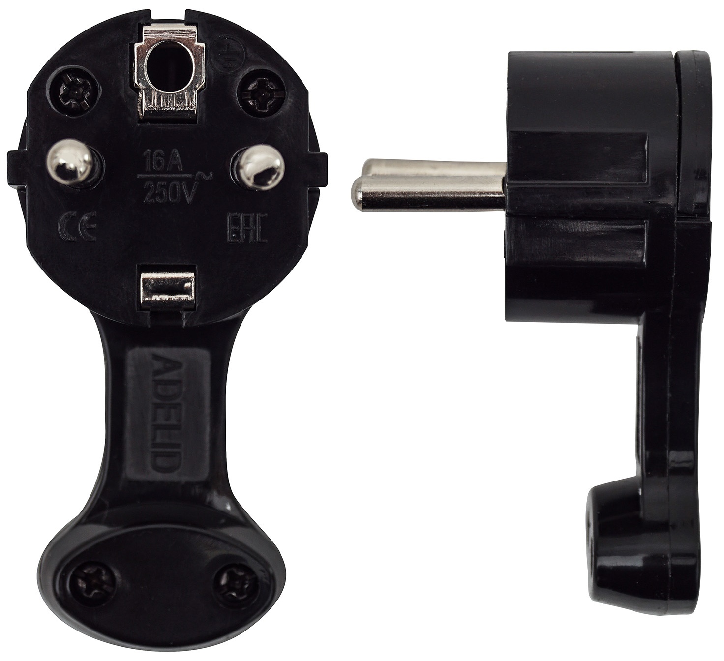 Вилка угловая ULTRA FLAT, с держателем, с заземлением ADELID 16А 250В 2P+Z