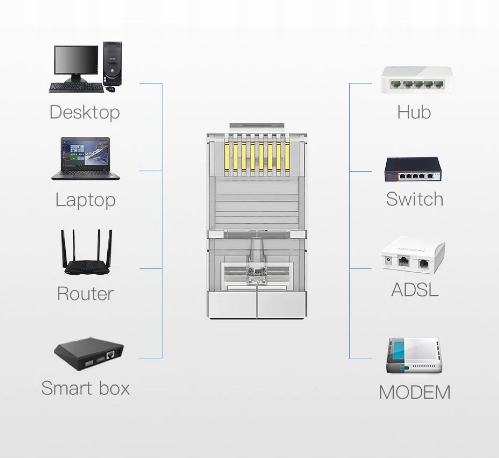 Благодаря высококачественным позолоченным чипам и контактным клеммам вилка обеспечивает более быструю и стабильную передачу. Позолота гарантирует отличную проводимость, минимизирует потери сигнала и поддерживает высокую скорость сети.