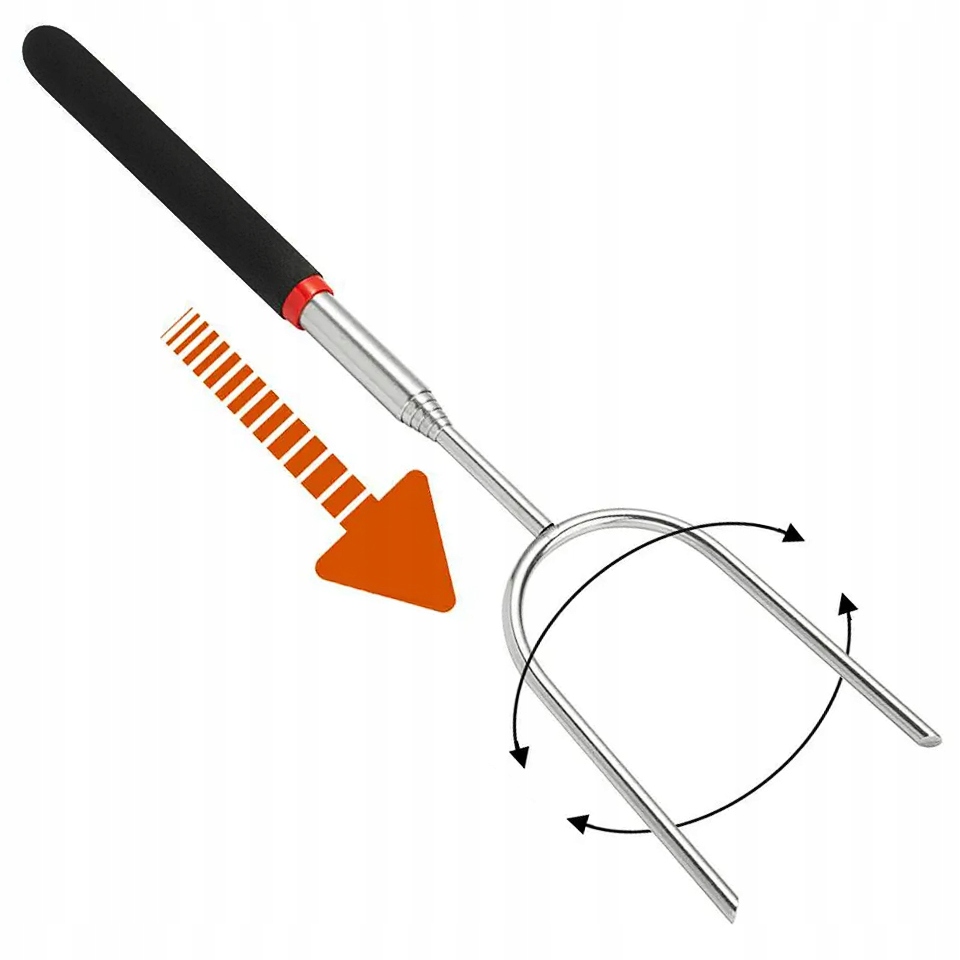 Телескопическая/выдвижная вилка для костра изготовлена из стали, ее длина позволяет сохранять безопасное расстояние от огня.