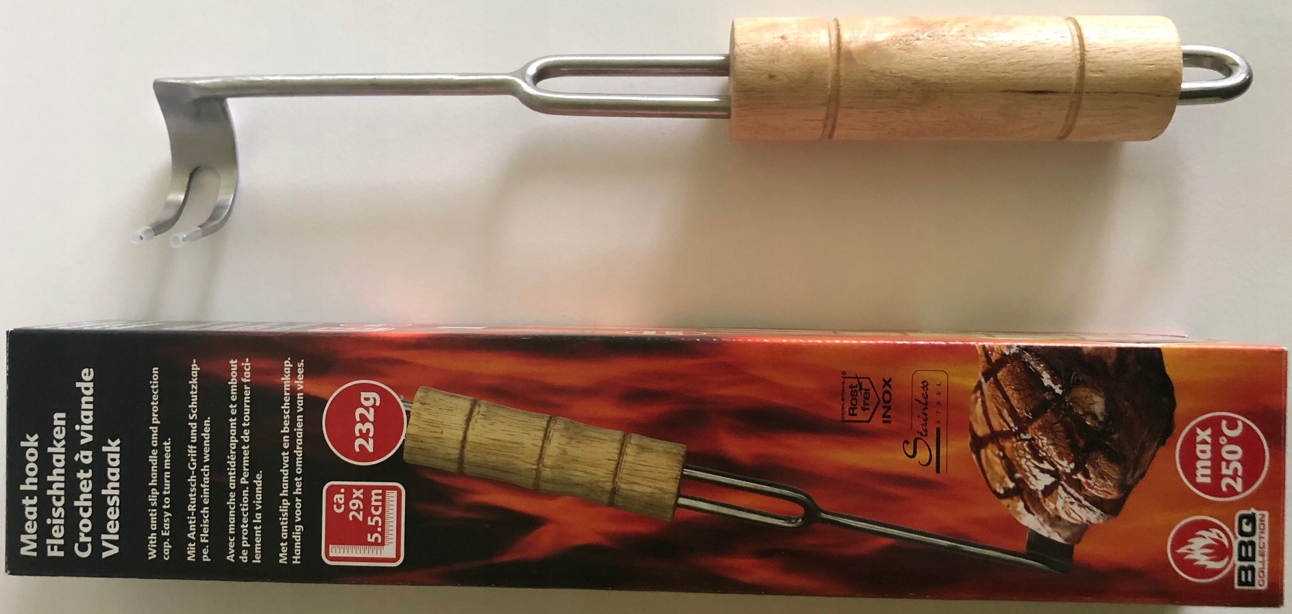 Стальной крюк с метким названием свиной хвост – инструмент, который будет незаменим при переворачивании и поднятии больших, жирных или просто тяжелых кусков мяса.