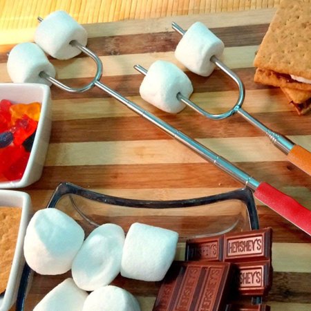 Телескопические палочки для тостов с двумя наконечниками для переворачивания ингредиентов на гриле, выпечки колбас и других занятий на свежем воздухе. Благодаря телескопической ручке их длину можно регулировать от 30 до 114 см.