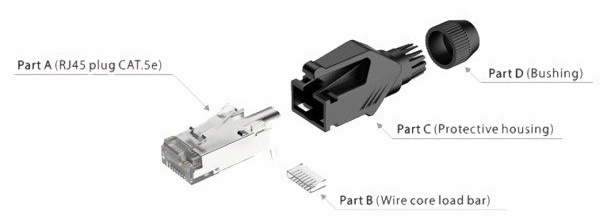 - Совместимость – Вилка RJ45 подходит к стандартным розеткам RJ45. Внутренний диаметр зажимной втулки: 7,45 мм. Возможность маркировки цветным кольцом.