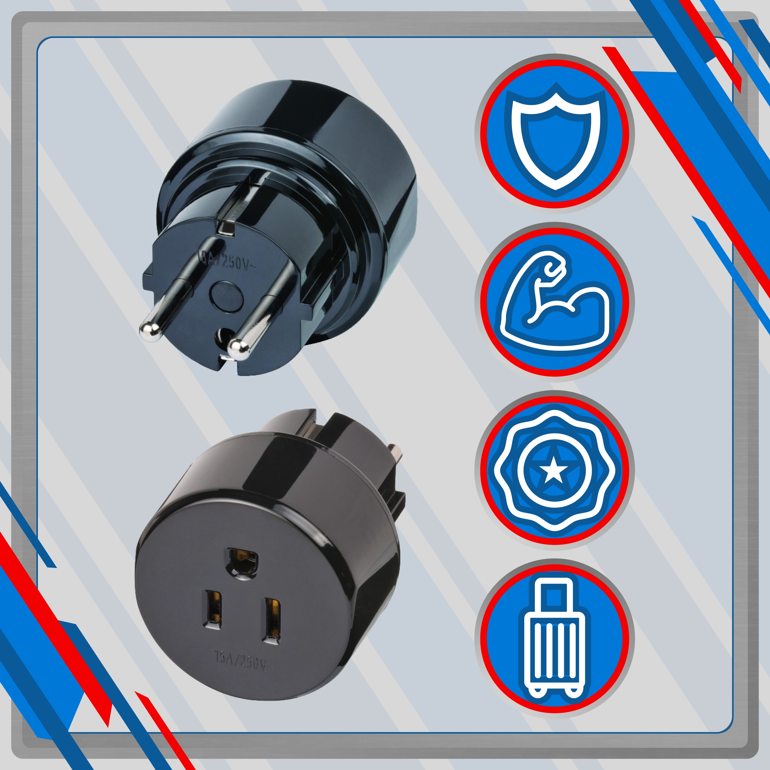 ❗️ В одной стране может существовать несколько стандартов плагинов. Поэтому помните, что предлагаемый дорожный адаптер может подойти не каждому устройству!