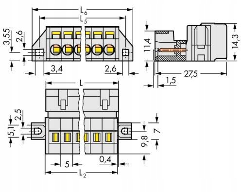 Вилка с монтажными кронштейнами 4-контактная, шаг 5 мм WAGO 47 шт.