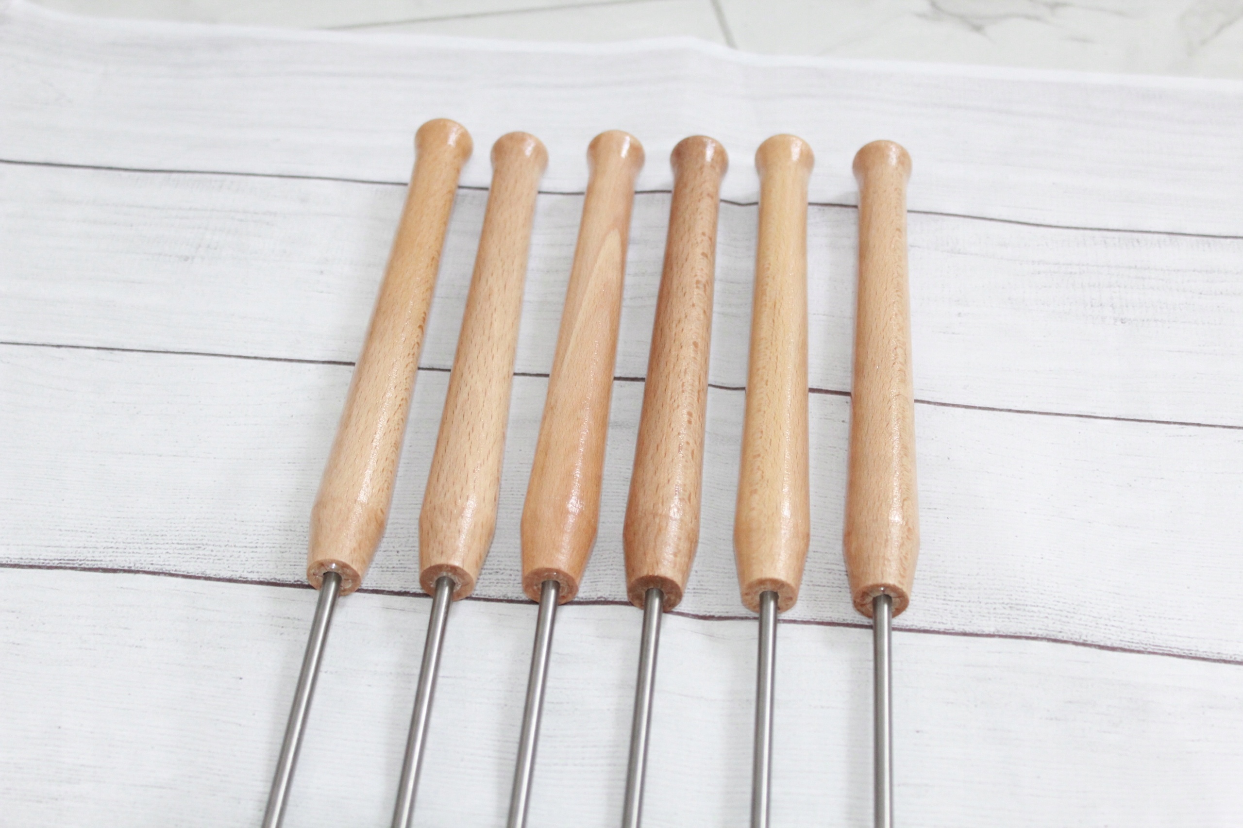 Вилки изготовлены из нержавеющей стали - кислотостойкой, прослужат долгие годы (не ржавеют как в случае с обычными дешевыми стальными столбами). Имеют острые концы, удобны для вставки колбасок. Большая деревянная ручка позволяет удобно жарить колбаски и защищает от ожогов.