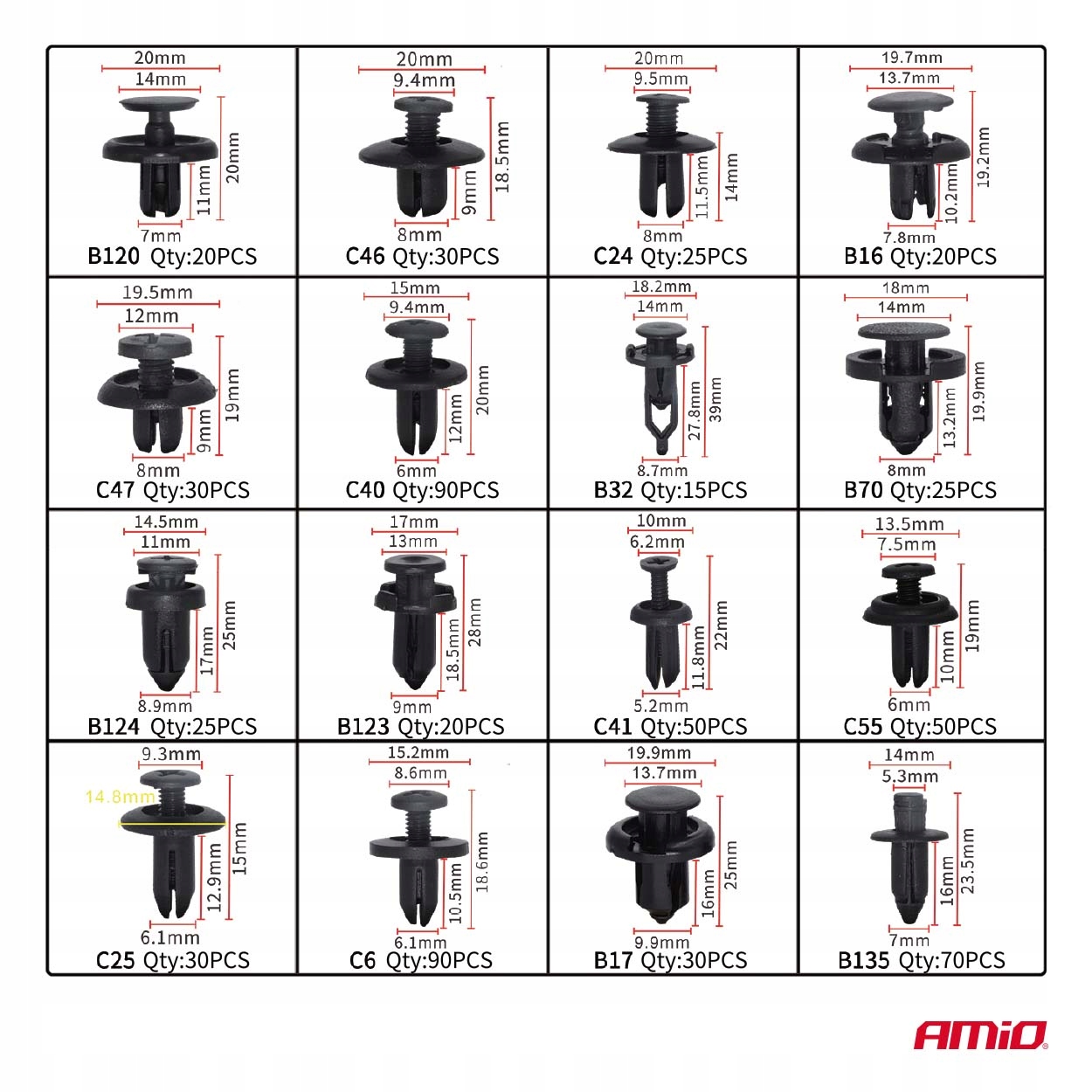 Заглушки запонок для автомобильной обивки набор 650EL. Амио