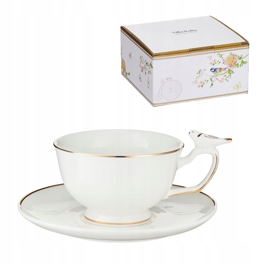 Элегантная чайная чашка из коллекции чай и кофе - Villa Italia . Сделано из фарфора NBC в оттенок молока белого и ручной, зарегистрированной золотом. Птичья статуэтка, украшающая чашку, добавляет уникального персонажа. Набор включает в себя приспособленную тарелку. Классический, вневременный дизайн и утонченные детали делают чашку PIAF в восхитительную обстановку для встреч с чаем. Упакованный в красочную декоративную коробку, она также идеальна в качестве подарка.