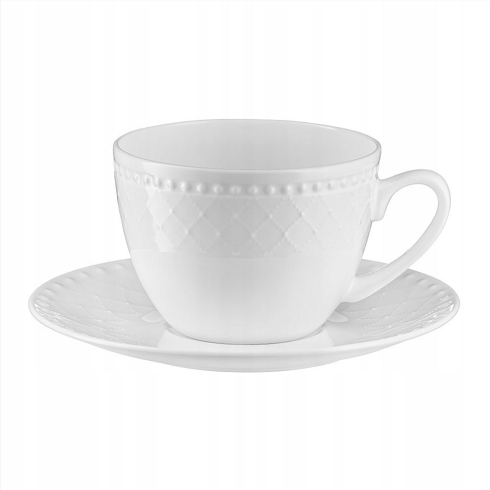 Фарфоровая чашка с блюдцом из коллекции рома. Рома -это фарфор с высоким классом, характеризующийся оттенком молока белого цвета. Блюда отличаются слегка выпуклым рисунком в виде тонкого кружева или решетки. Рома фарфоровая линия сочетает в себе элегантность и комфорт использования. Белые чашки рома отлично подходят для повседневного использования. Коллекция также включает в себя ужин суда, чашки для завтрака и чашки.