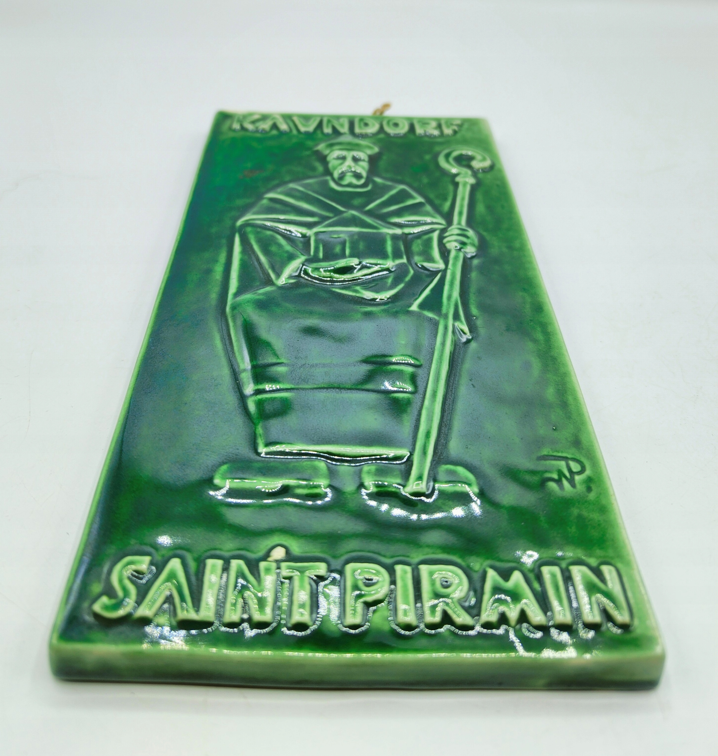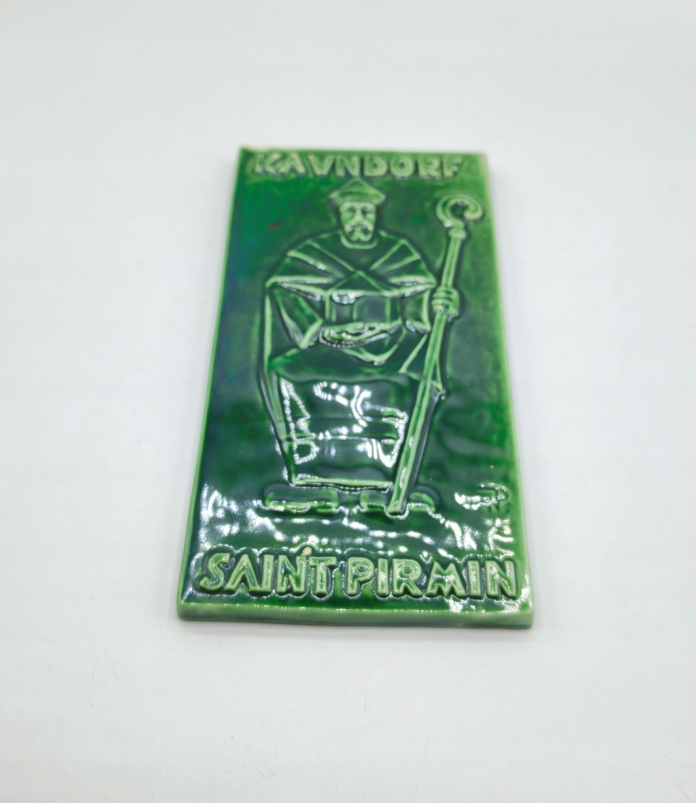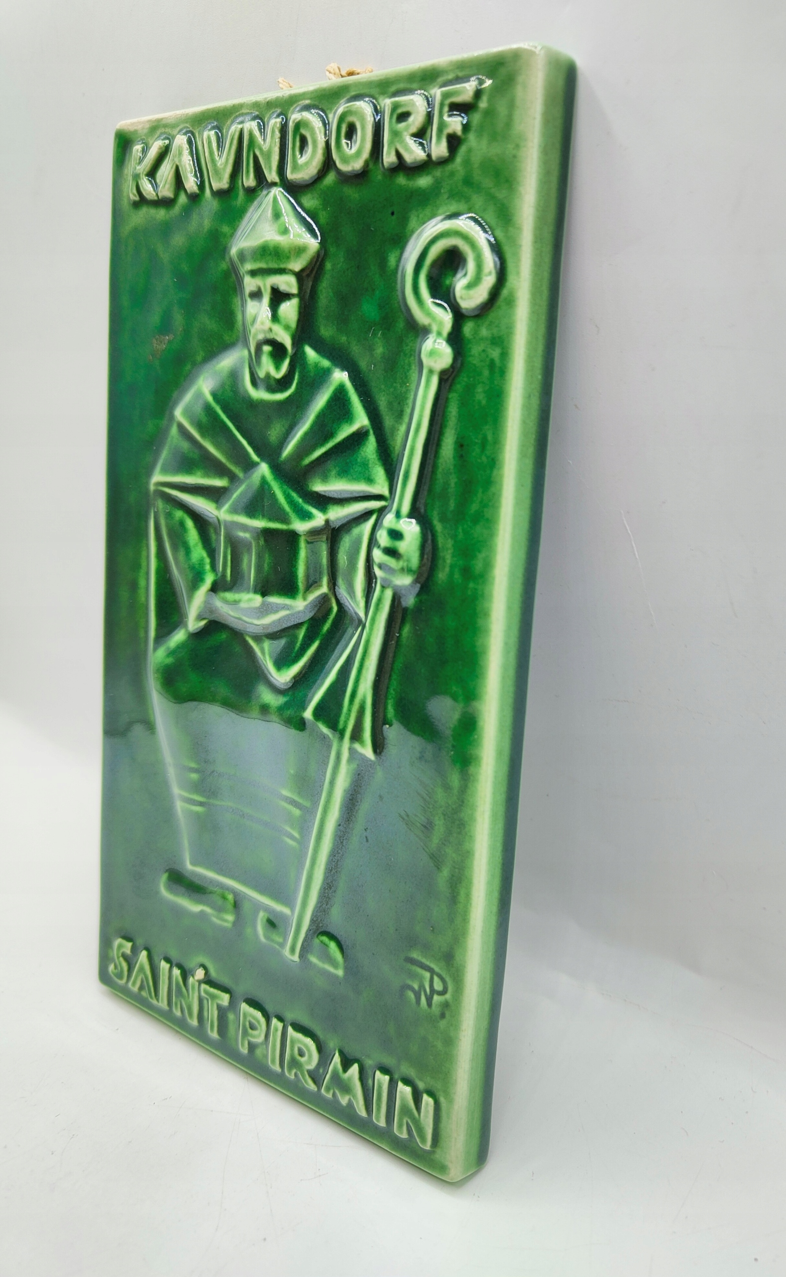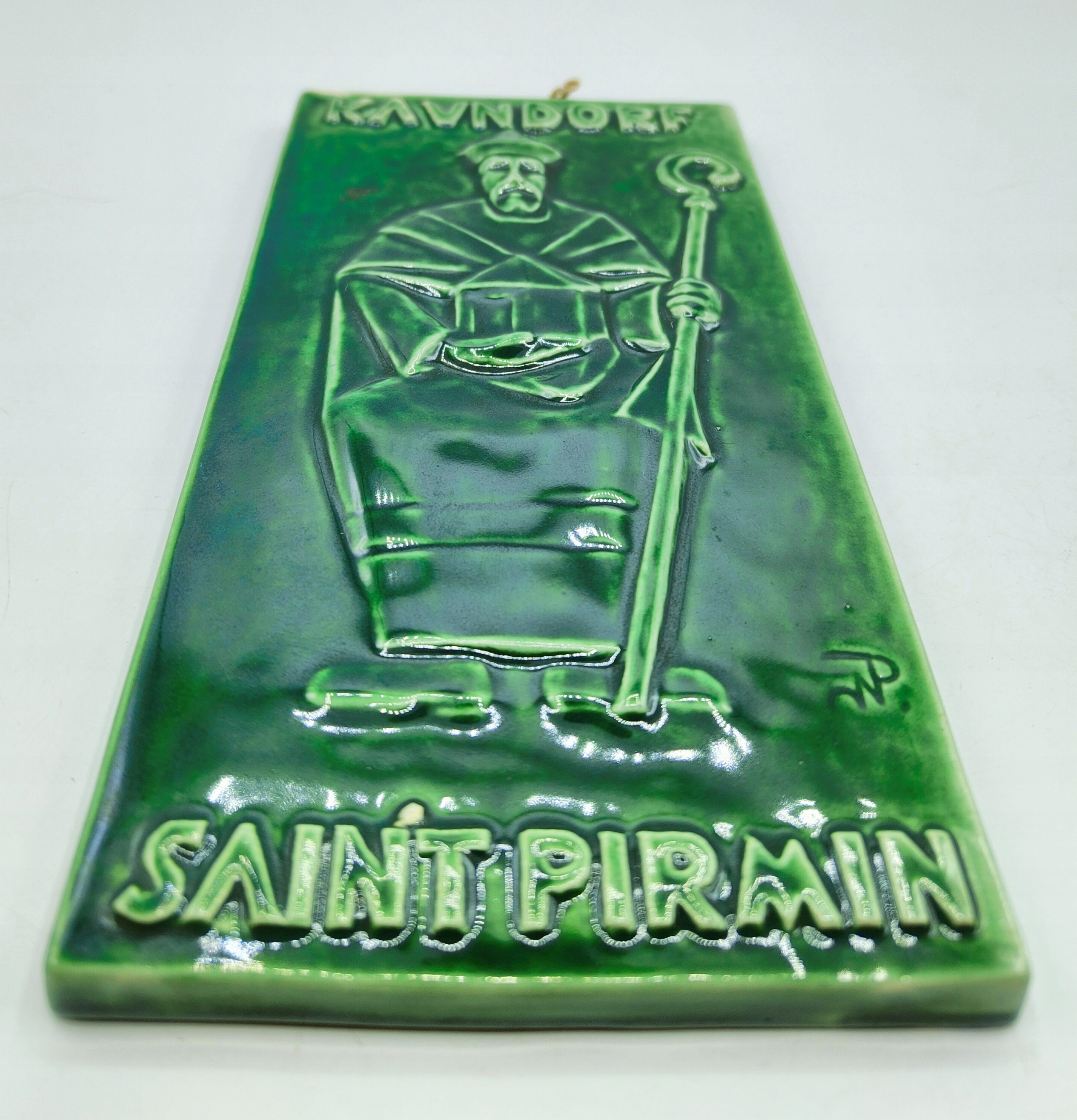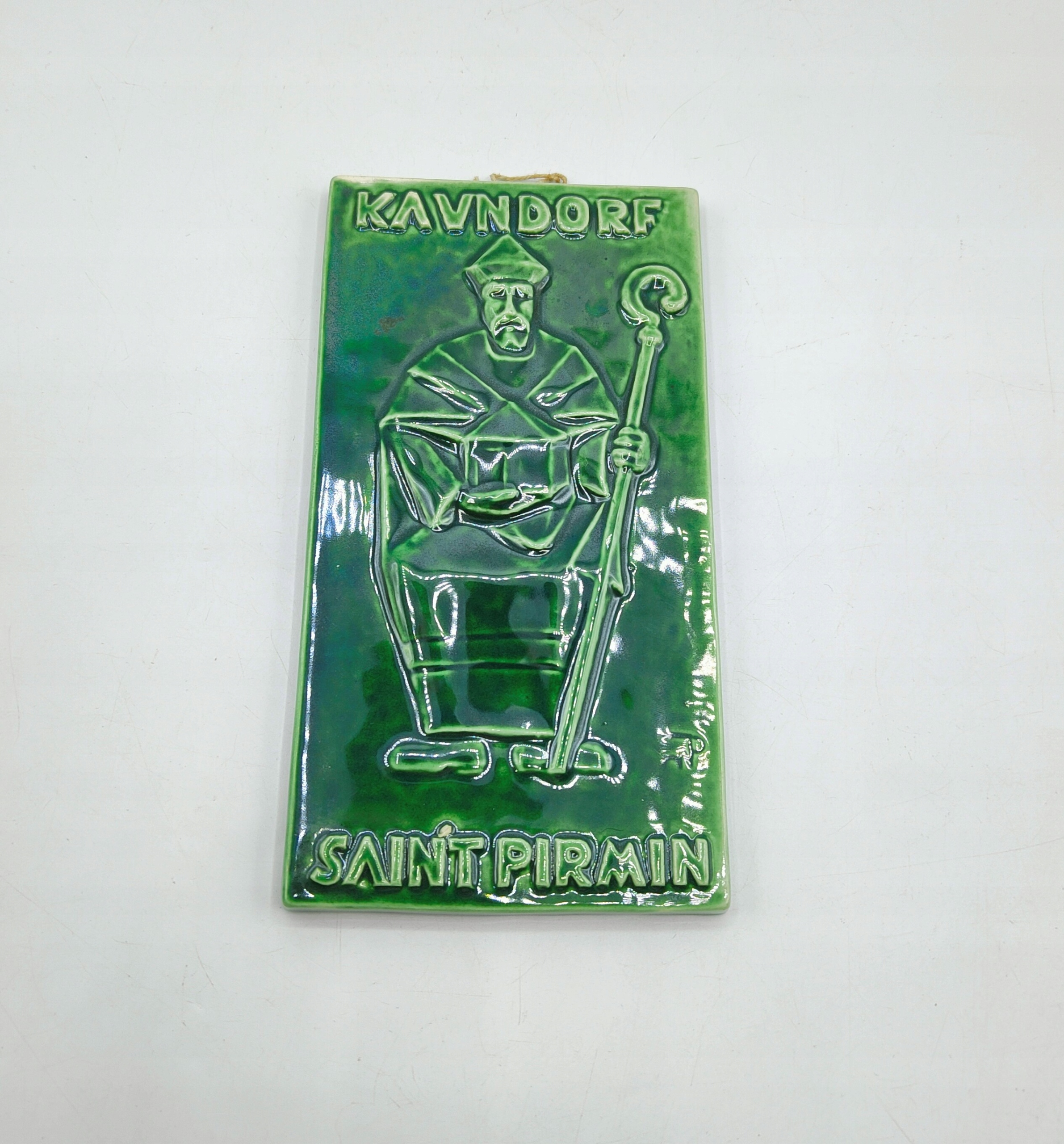 Прямоугольная плитка работы люксембургского художника Венцеля Профанта - барельеф с изображением святого. Пирмина в Каундорфе
