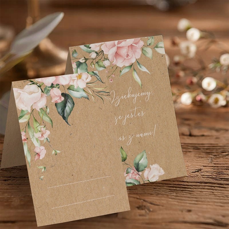 - печать: на одной стороне визиток цветочный принт и надпись, на другой есть место для написания имен гостей.