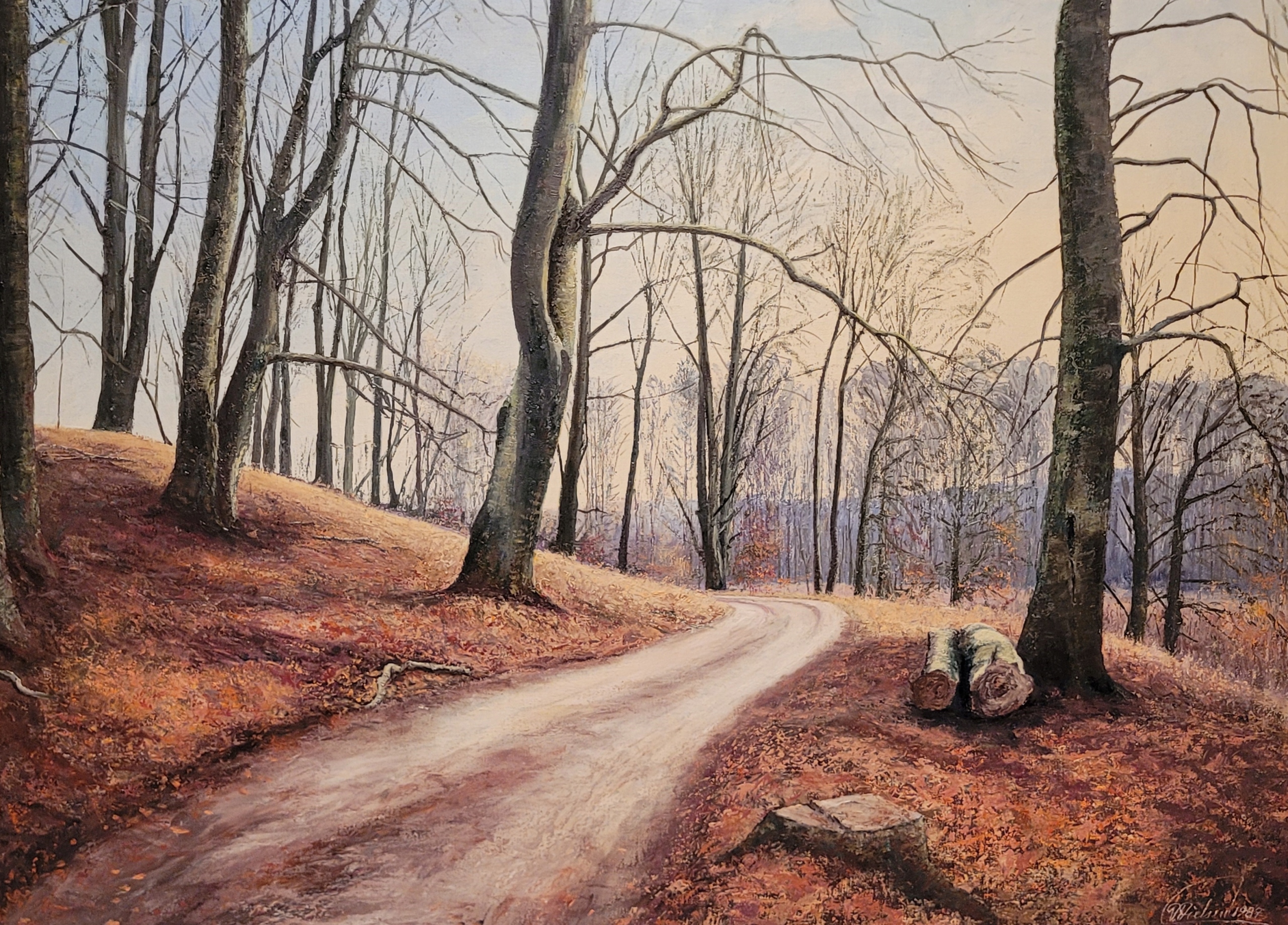 ВИЛЛИ НИЛЬСЕН (1916 - ?) - «ЛЕСНОЙ ПРОХОД», прекрасная картина маслом - 1987 г.
