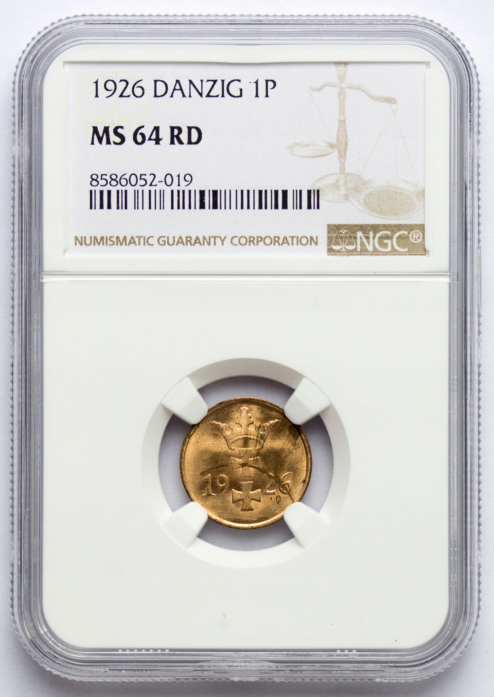 Вольный город Данциг, 1 пфенниг 1926 года, NGC MS64 RD, 2-я НОТА, ВЕЛИКОЛЕПНАЯ