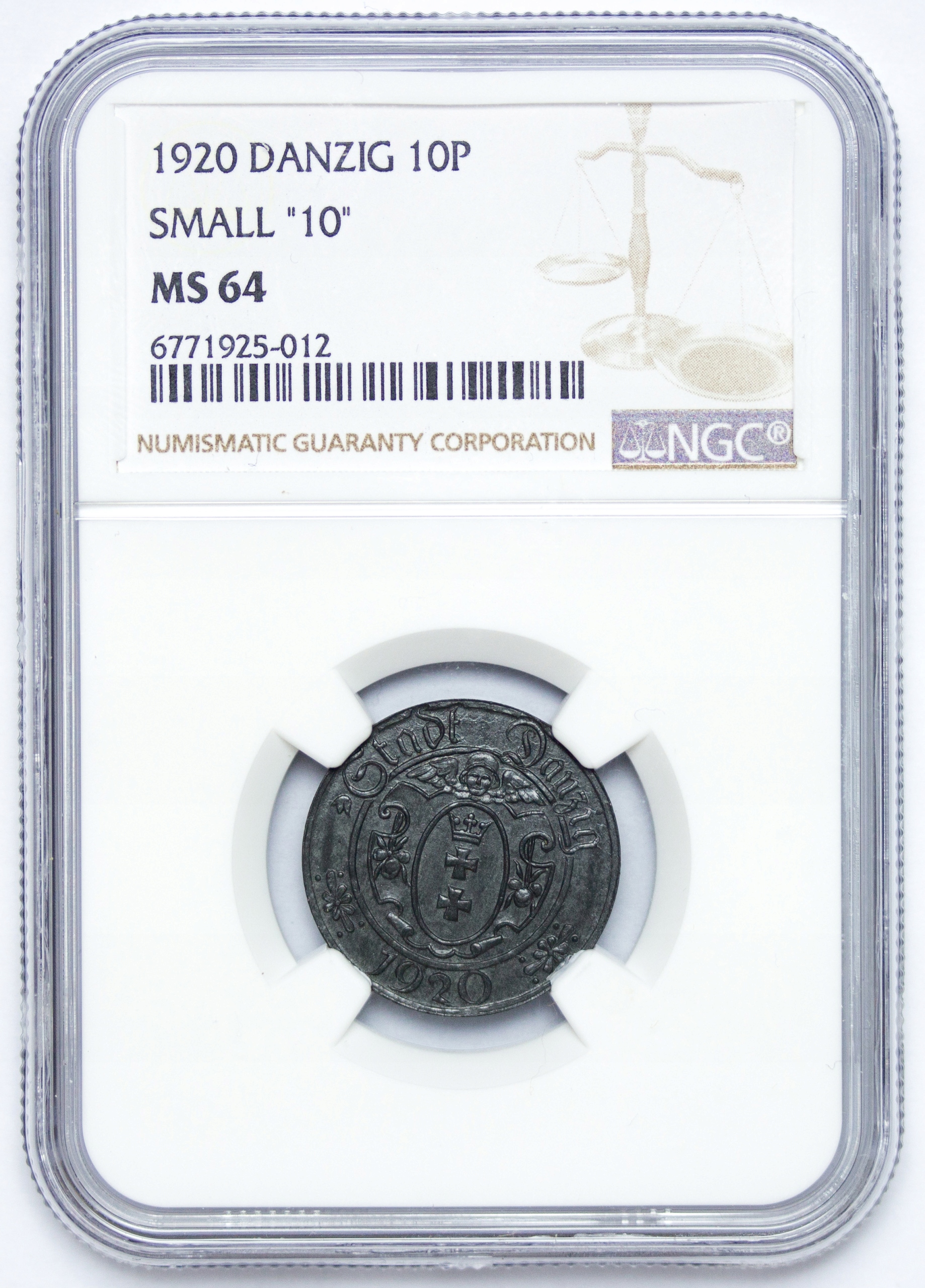 Вільне місто Гданськ, 10 пфенігів 1920, NGC MS64, MAX NOTA, КРАСИВО
