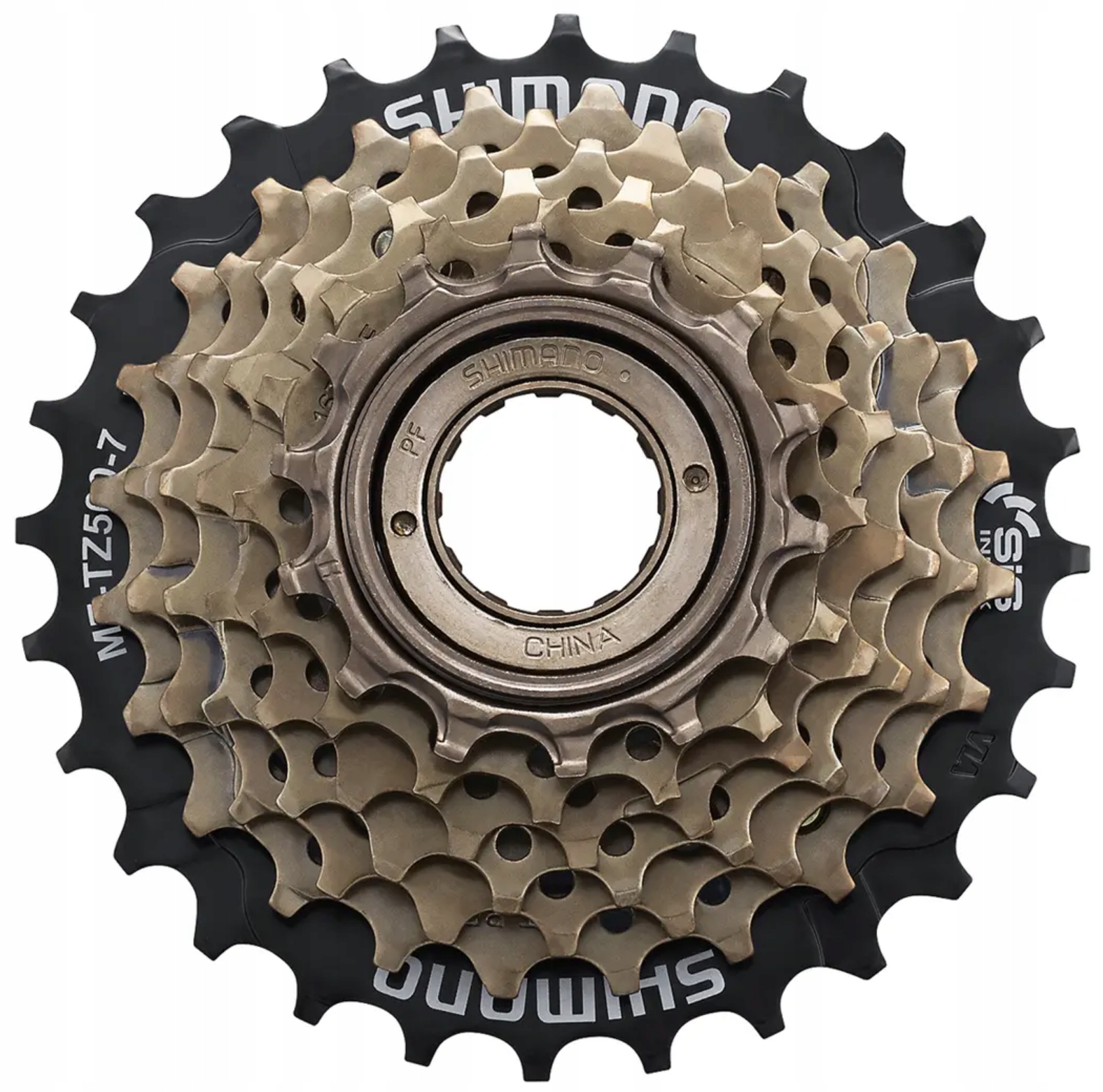 Обгонная муфта Shimano MF-TZ50 14-28T обеспечивает широкий диапазон передач. Расстояние между звездочками 14-28 означает, что недостатка в передачах быть не должно как при езде по ровной местности, так и в гору. Обгонная муфта выпускается в двух вариантах: 6- и 7-рядная.