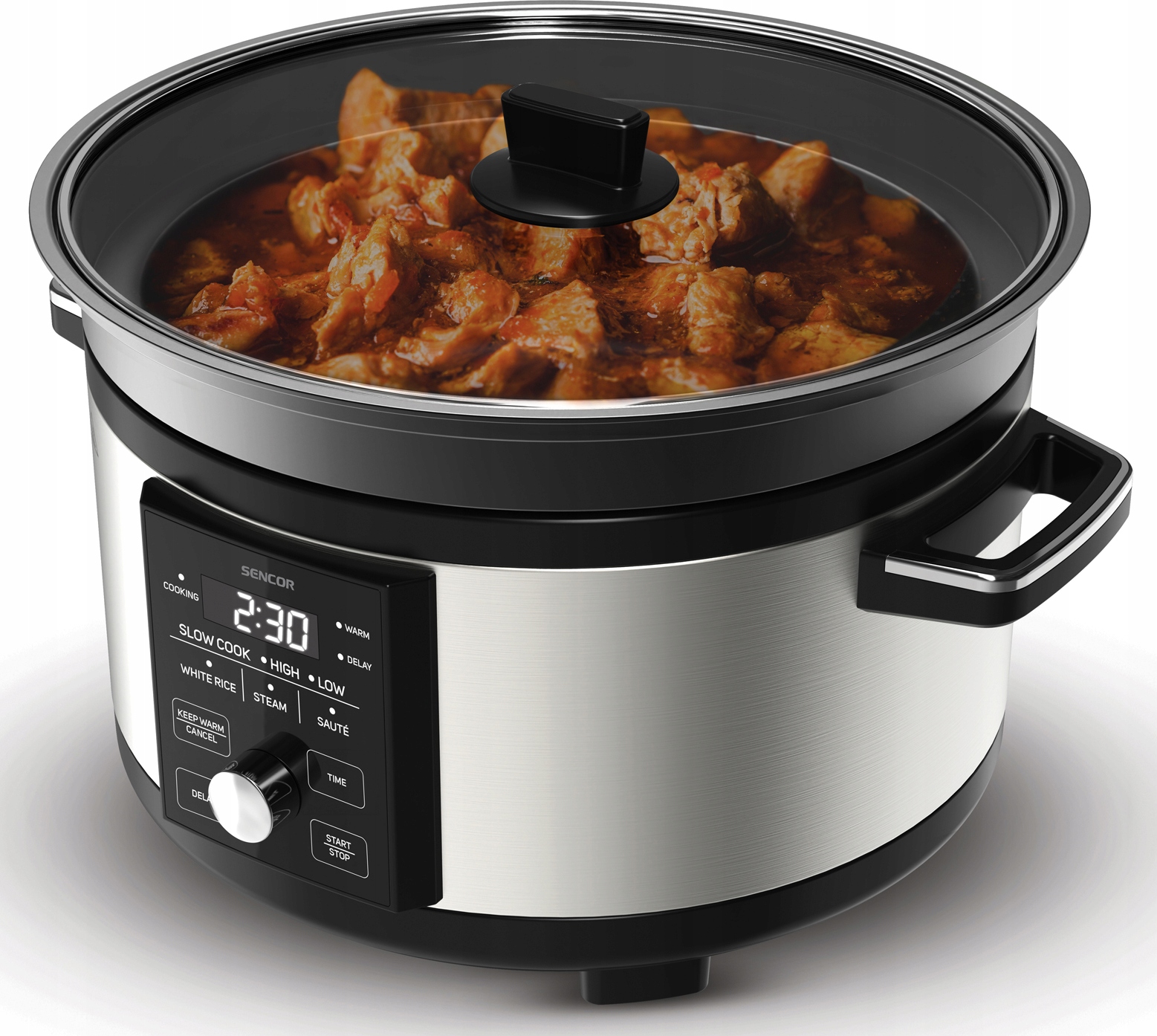 Sencor SPR5520SS — это современный многофункциональный кухонный прибор, предназначенный для здорового, простого и экономичного приготовления пищи. Благодаря элегантной отделке из нержавеющей стали, интуитивно понятному цифровому управлению и широкому набору функций эта мультиварка идеальна как на домашней кухне, так и при приготовлении пищи в путешествии.