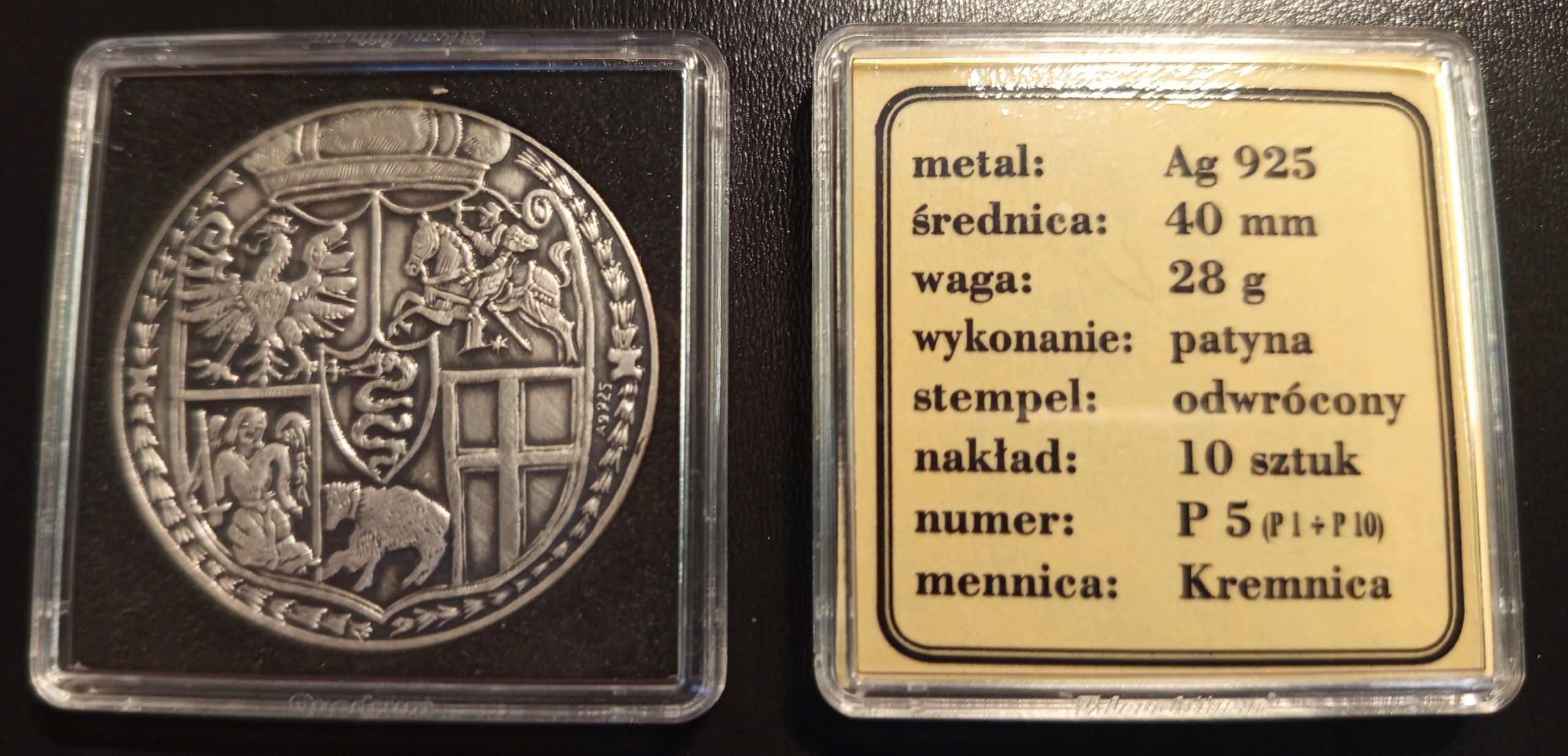 Технологические испытания, по заказу эмитента, проводились на знаменитом словацком монетном дворе в г. Кремница, в серебре (проба 925) в следующих вариантах: позолота, бронзовая патина, серебряная патина, чеканенная обычным или реверсивным штампом - тиражом 10 пронумерованных наборов каждого типа. Каждый набор на ребре монеты маркировался буквой и цифрой, состоящей из буквы Р и одной-двух цифр. Всего было отчеканено всего 500монет, составляющих технологические испытания: