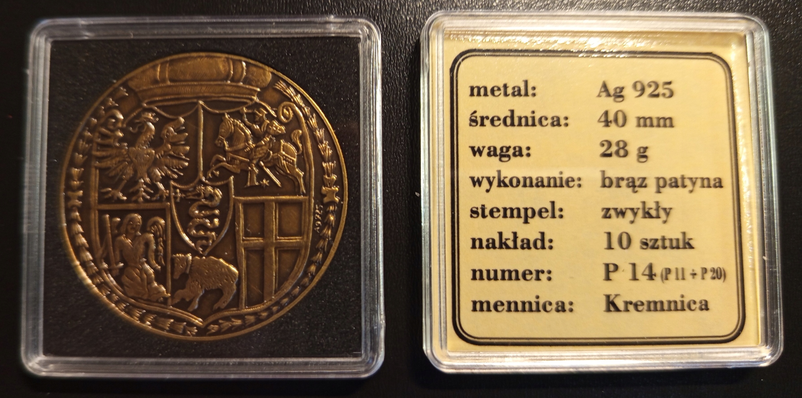 - Серия и номер монеты (отчеканенной по ребру) – P14